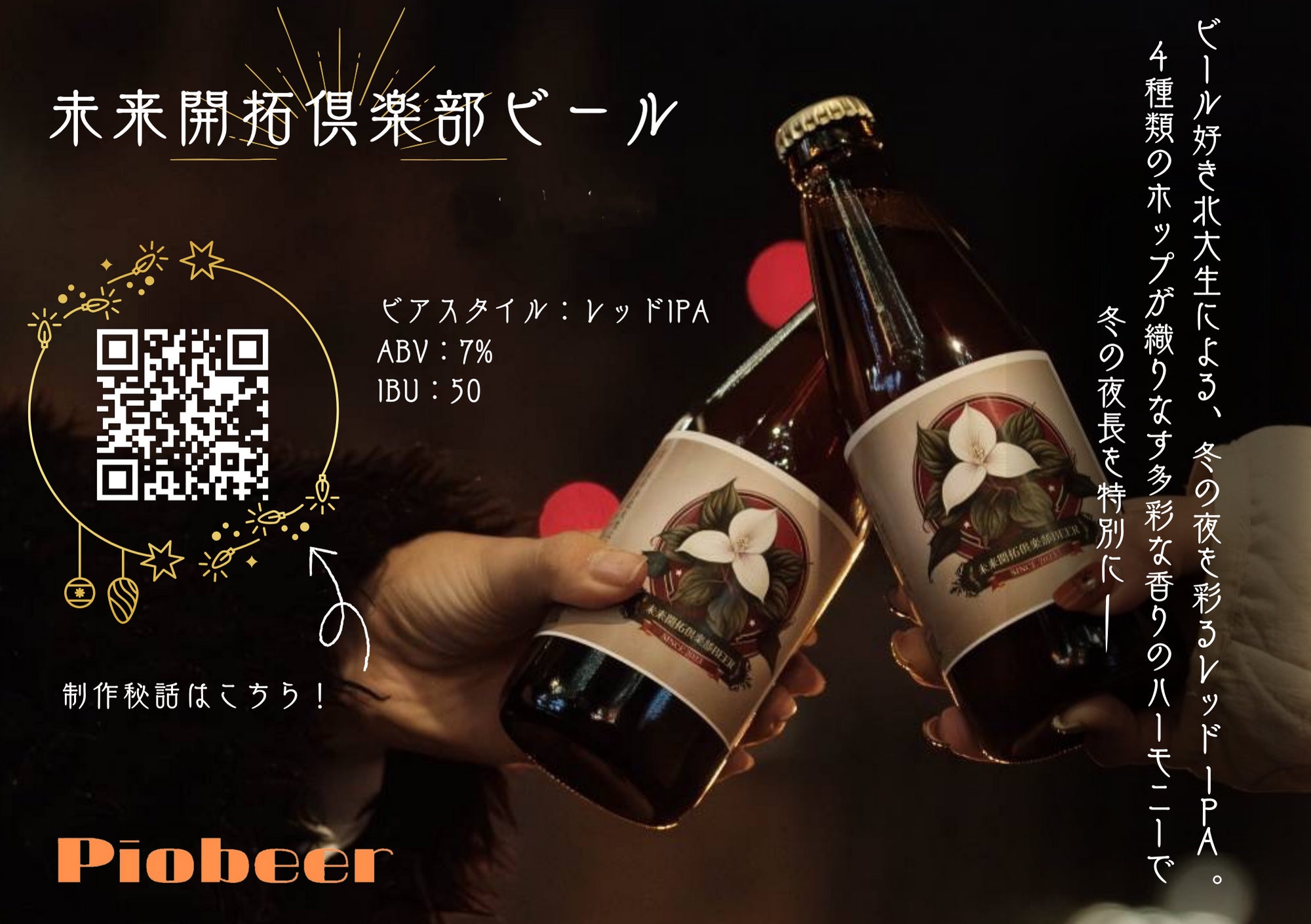 一方で、北大の学生団体「未来開拓俱楽部」ではBeer PJ(プロジェクト)を発足し、昨年夏に第一弾のオリジナルビールを完成させました。