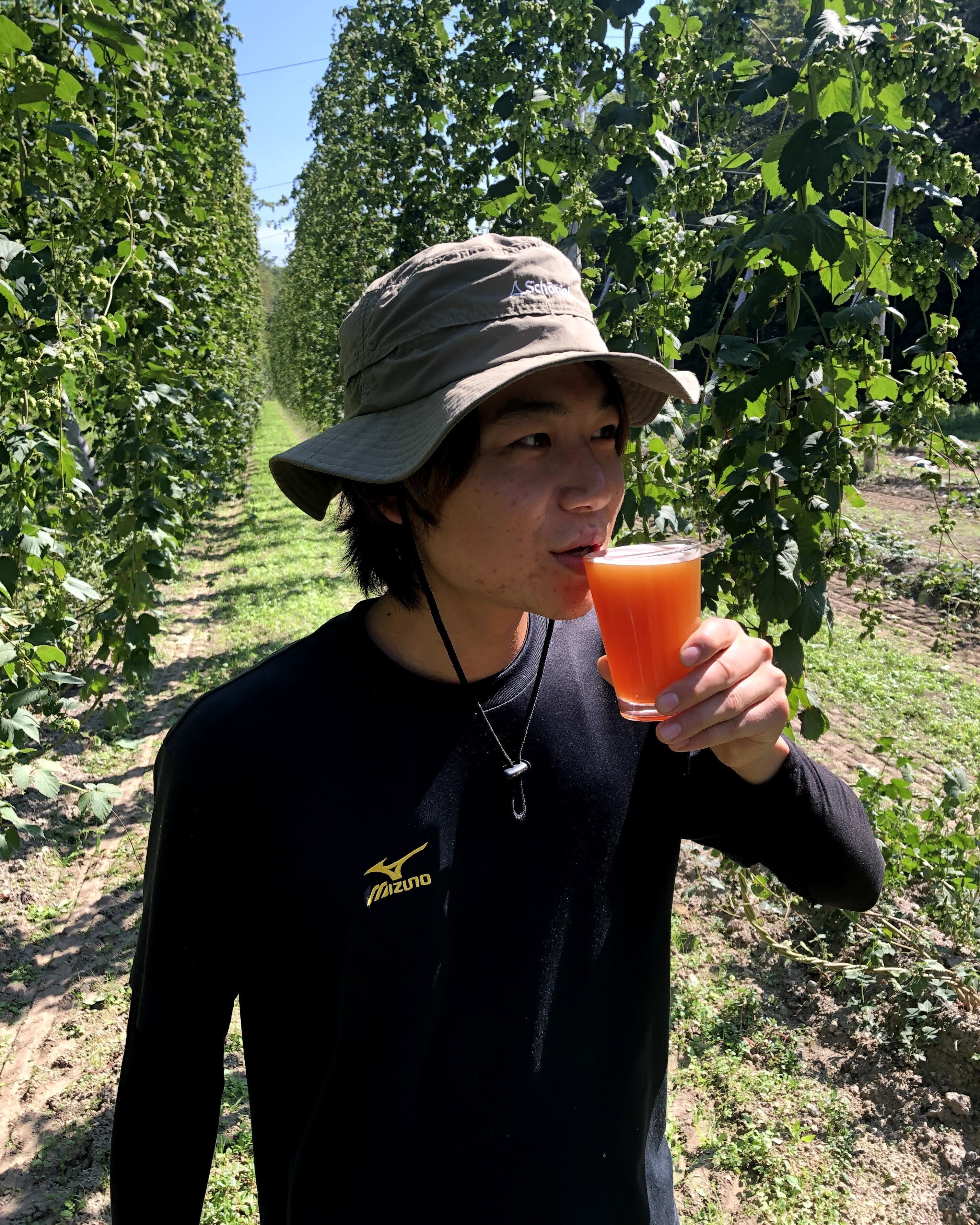 大学3年の夏、上富良野のホップ収穫バイトにて