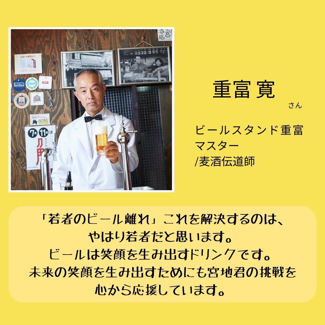 このプロジェクトを通じて、通年でビールを販売することで、ビールをきっかけとした、人生を豊かにする特別な体験を届けたいと思いますので、応援のほどよろしくお願いいたします!