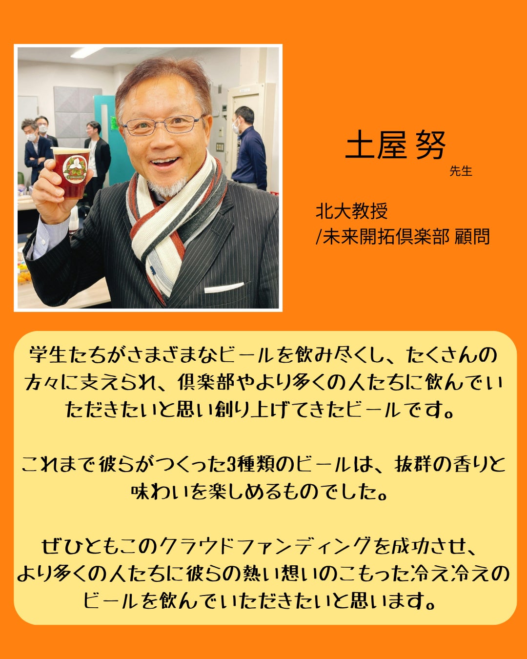 そして売上の一部を使って、多様なビールの面白さを知るきっかけとなる無料の学生向けイベントを企画したいと考えております!