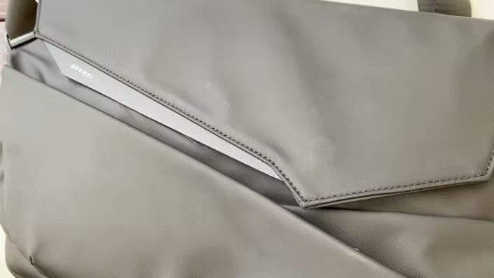 デザインは 前作 SEKKEI S-sling を踏襲しつつ、さらにシャープにしました。このスリングバッグを背負ったGen-X世代(40代、50代のジェネレーションX)の後ろ姿をとにかくカッコよく見せるために、シャープでフラットなフォルムをイメージしました。ミドル世代が一回り若々しく見えるように、という想いをデザインに表現しました。
