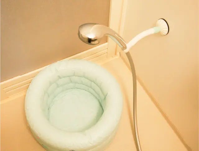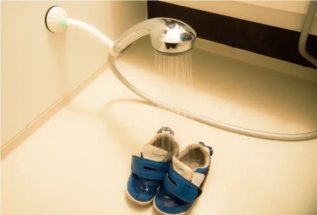 子どもの近くに設置することで、優しい水流でお湯をあててあげることができます。