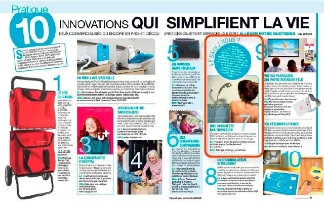 ⇧フランスの雑誌【France dimanche】2019年9月号で、生活をシンプルにするイノベーション特集で紹介されたページ。