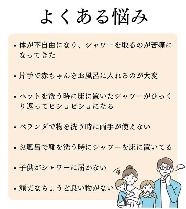 それだけではありません。実はシャワーに関して多くの人が色んな不自由を感じています