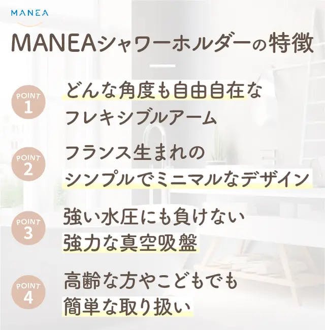 生活をより快適にするMANEAシャワーホルダーが長く皆さんに寄り添えれば嬉しいです。