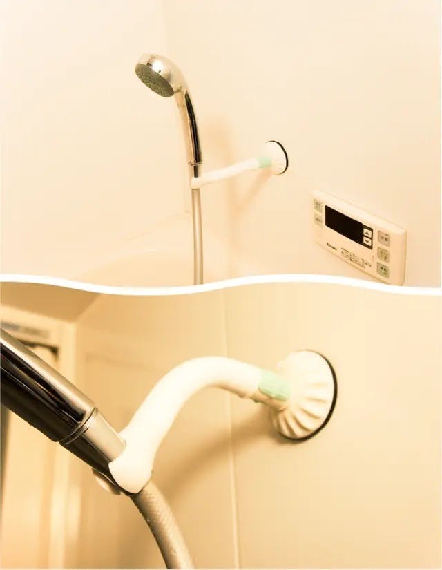2:シャワーホルダーを立てた状態で吸盤を壁面に貼り付ける