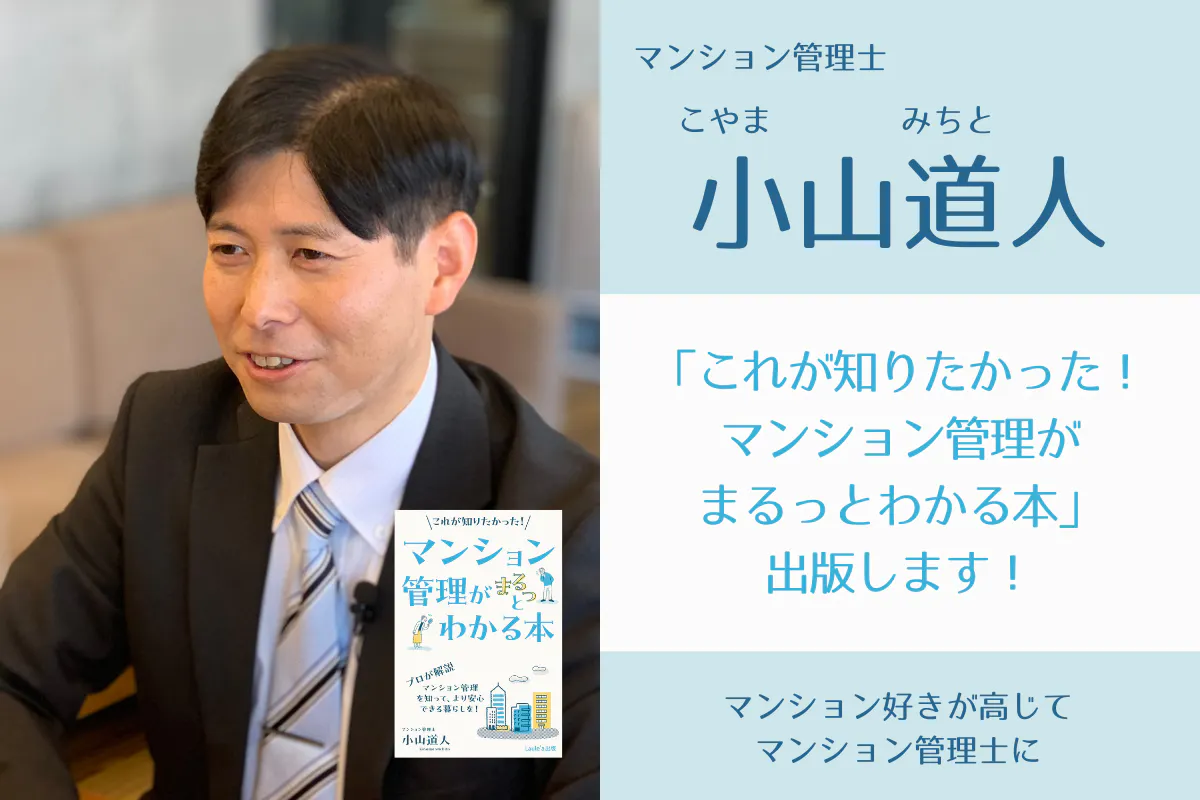 皆様、はじめまして。「これが知りたかった!マンション管理がまるっとわかる本」の著者、マンション管理士の小山 道人(こやま みちと)と申します。