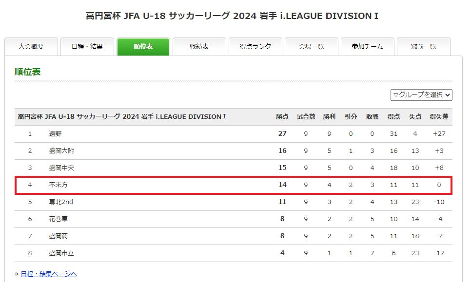勝ち点3がプラスされ14となり、順位は変わらず4位のままとなっています。