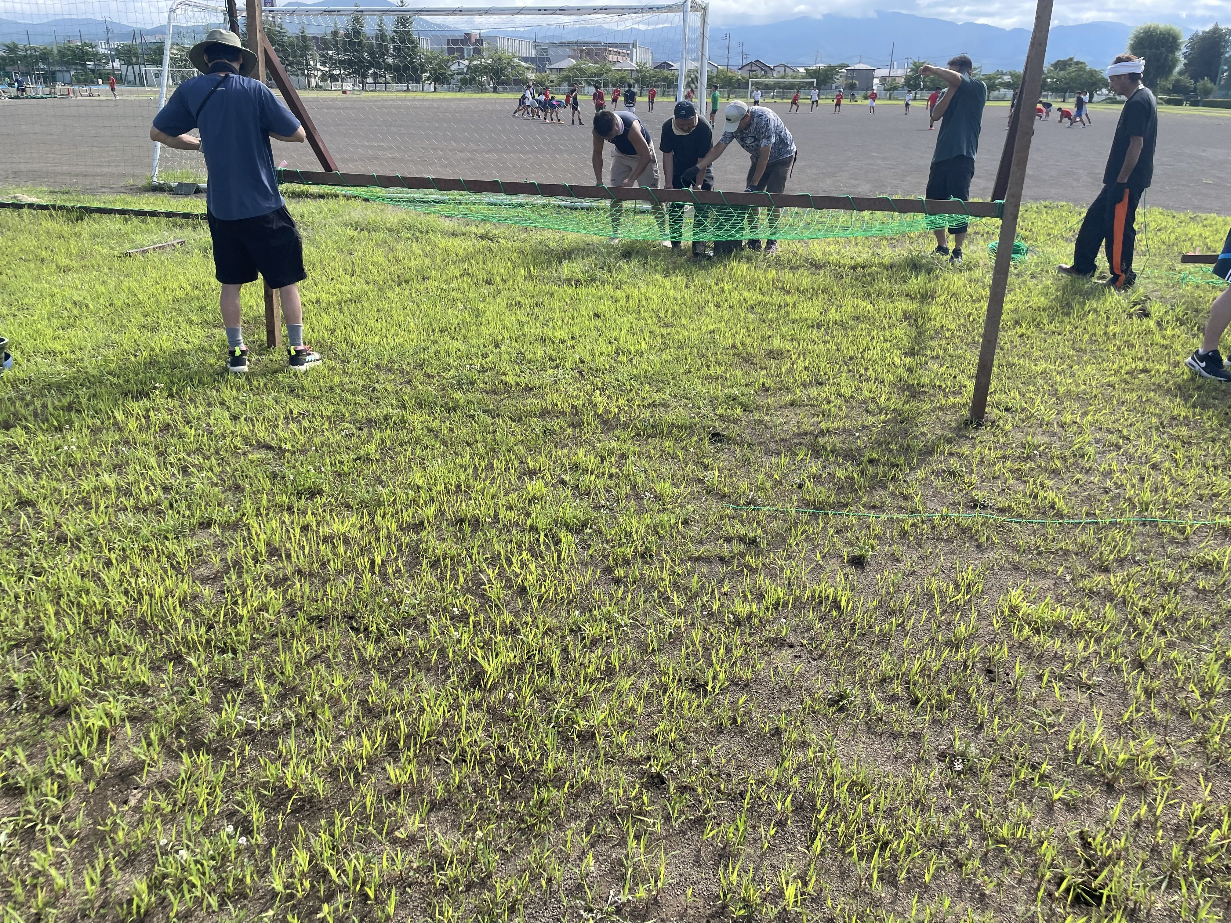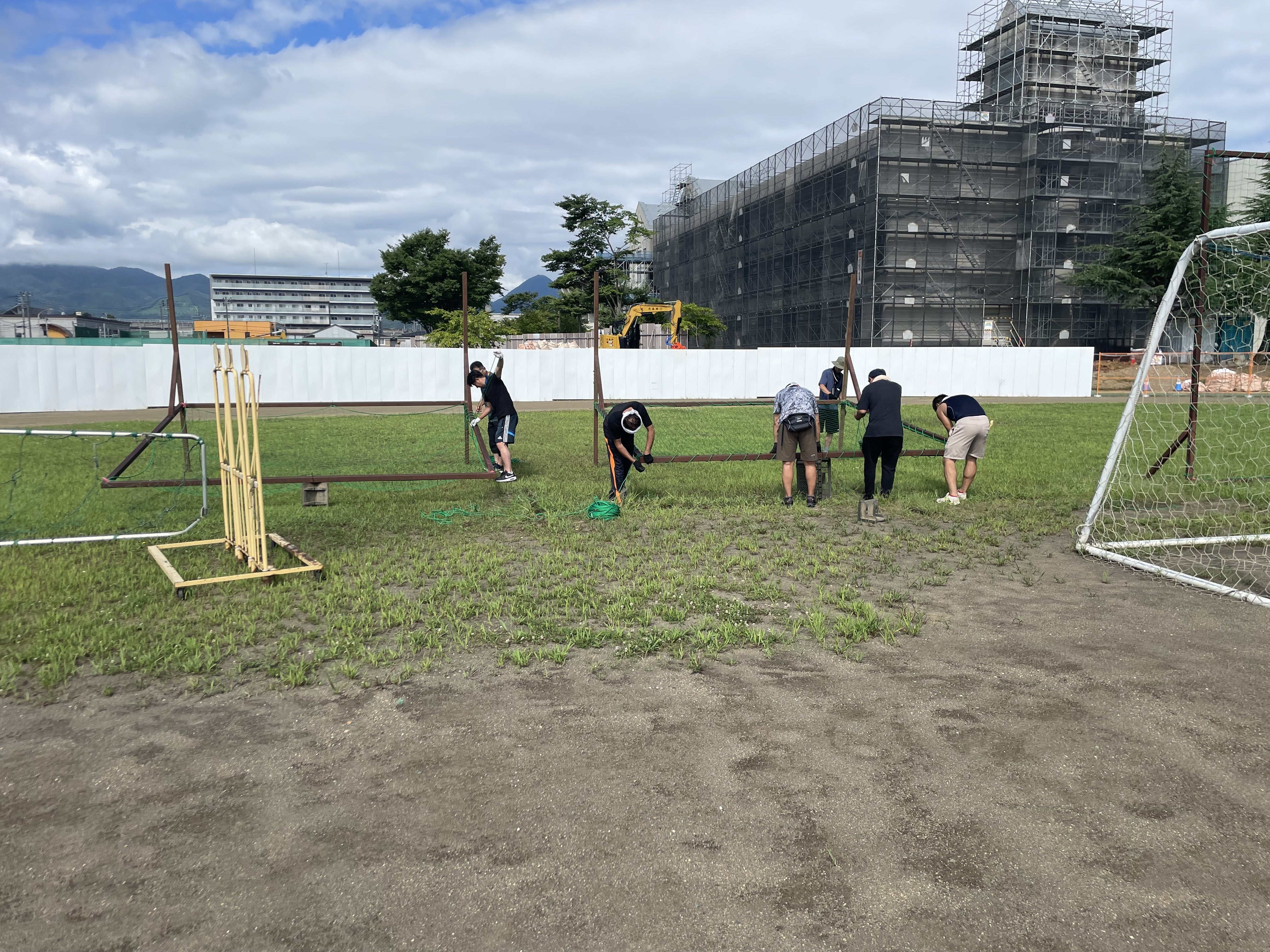 8月18日(日)、クラウドファンディングの目的のひとつである防球ネットの張り替えをお父さんたちの協力を得て行いました。