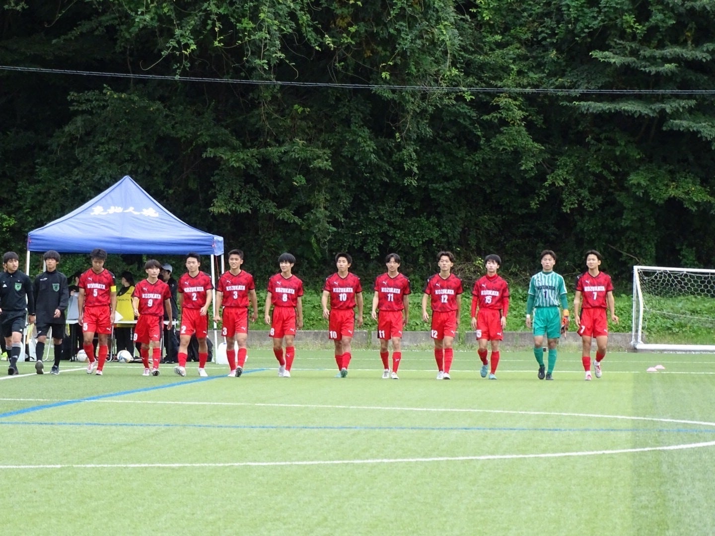 前半24分、2年山崎がペナルティーエリア内でファールを受けPKを獲得します。キッカーは山崎。ここは冷静に決め、待望の先制点を獲得します。