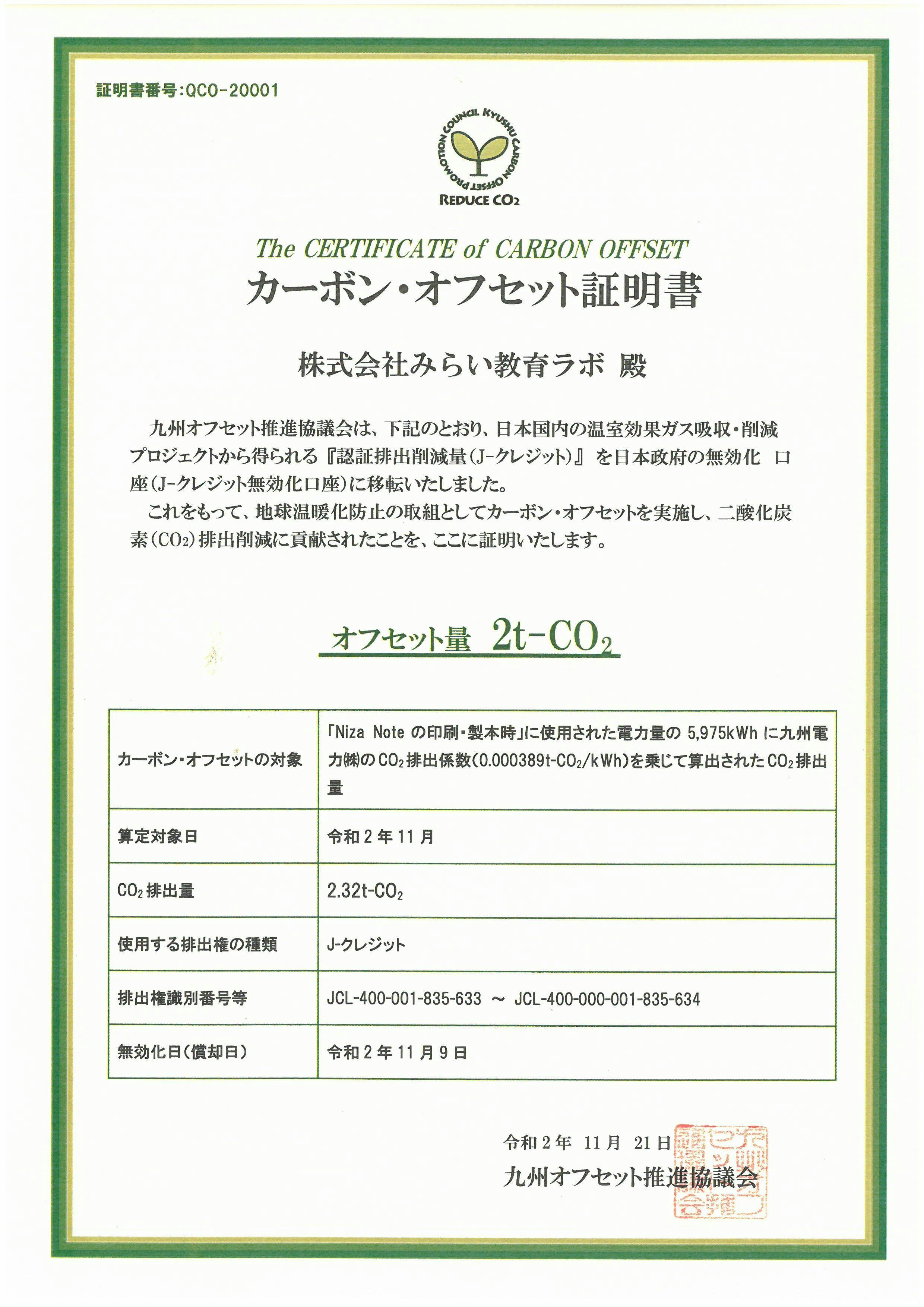カーボン・オフセット証明書