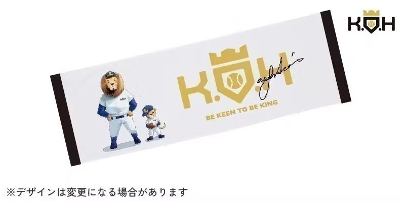 菊池雄星のサインとKOHのロゴ&キャラクターをあしらった、K.O.Hオープン記念デザインのスポーツタオルです。