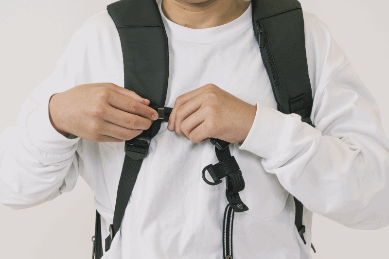 愛用のリュック紐に本体のゴム紐を取り付けるだけで簡単に装着が可能です。