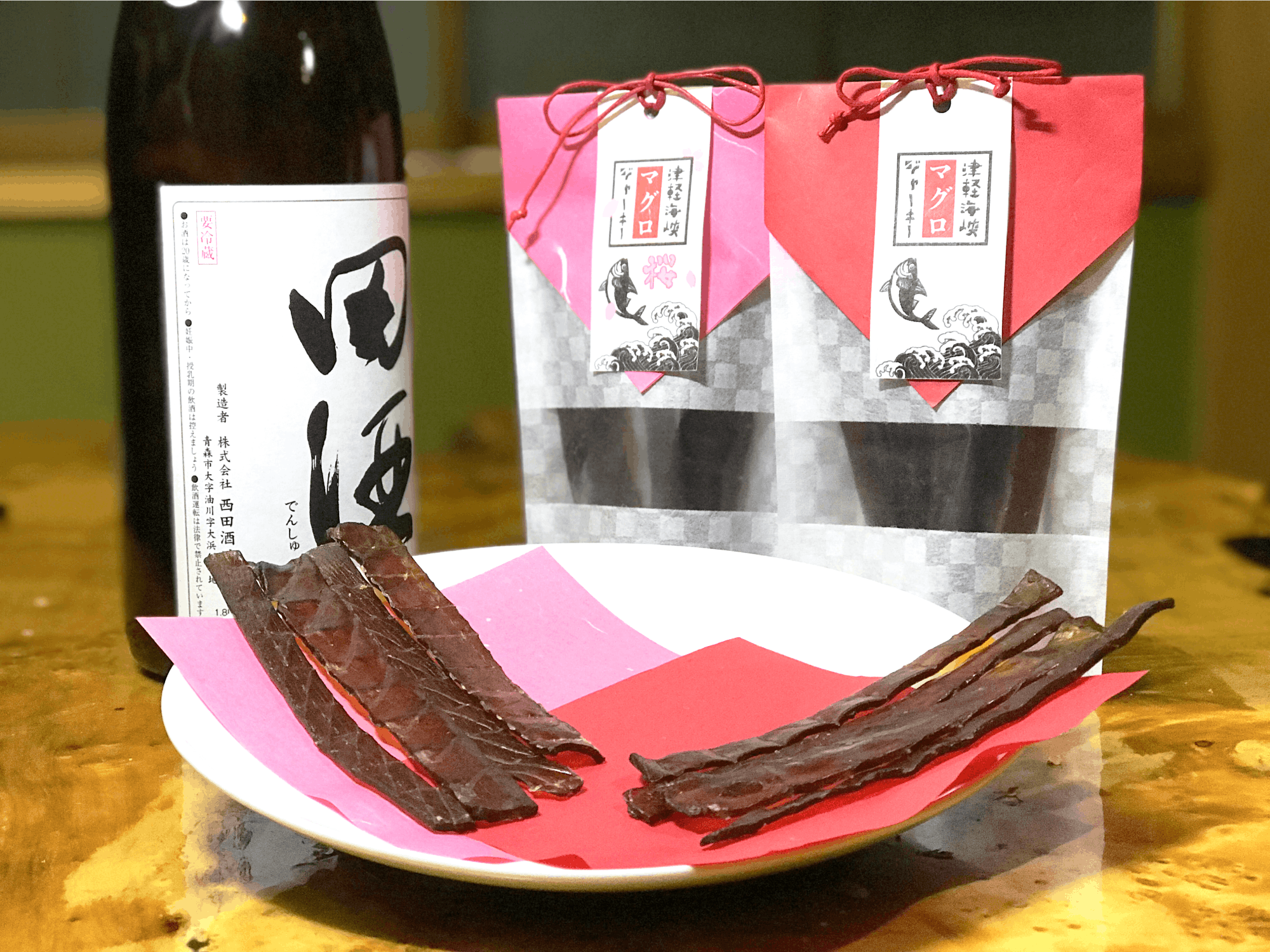 津軽海峡の本マグロを食べやすいサイズにカット、3種類の調味料で味付けし乾燥させた商品です。調味料に使用している醤油には岩手県の株式会社びはんコーポレーションの協力のもと山田の醤油を使用させていただきました。※生産終了いたしました。