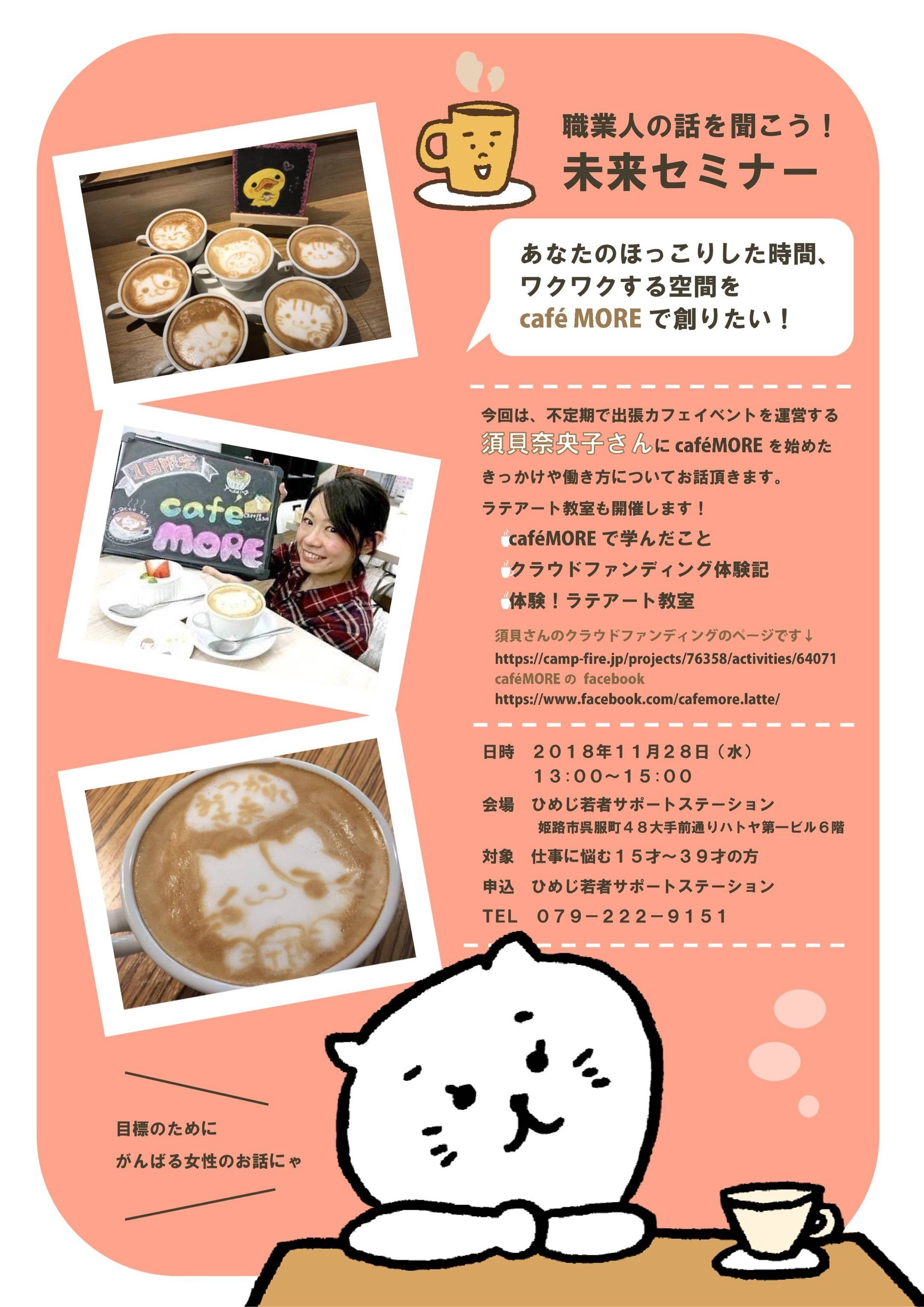以前、「Café MOREプロデュース会議」という会議を企画して開催した時に、来てくださった方からの依頼で、セミナーをしてほしい!とのこと。