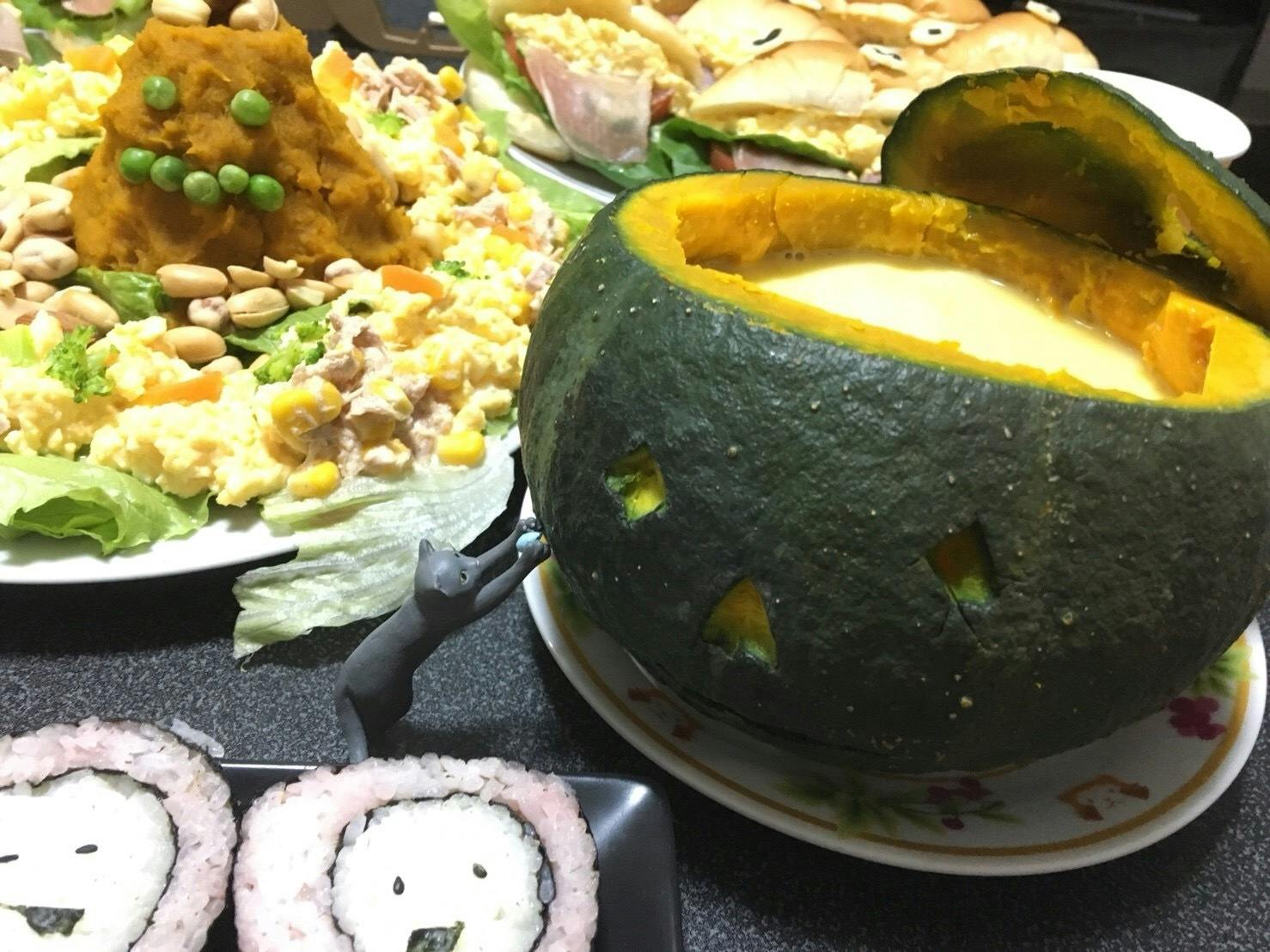 今日は夜、友達の家でハロウィンパーティーをしました。