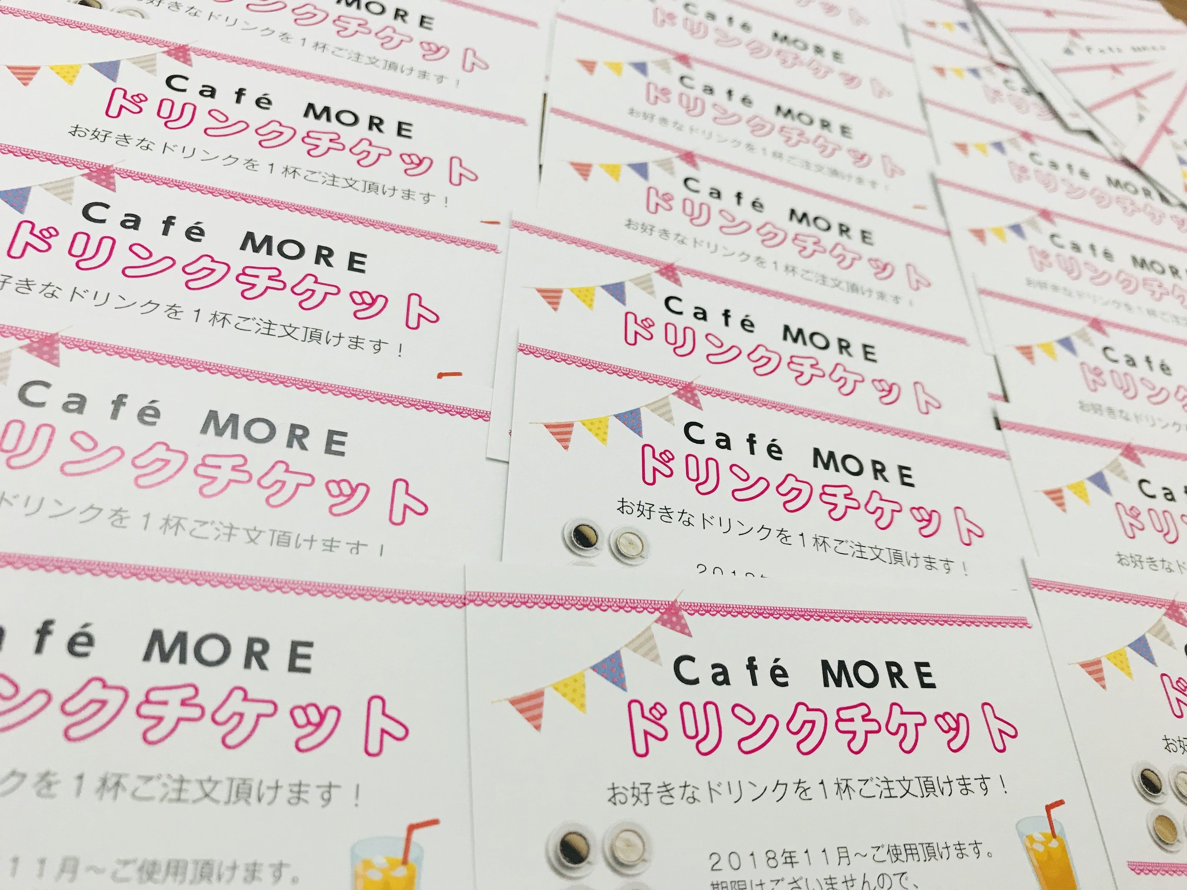 リターンの、チケットが出来上がりましたー!!!!!!! 自分でデザインしたんですが、どうですか?(^^;) リターンでチケットを選んで下さった方、 ありがとうございます!!!!!!! ドリンクチケットを選んで下さった方、 こちらを8枚!! ドリンク&スイーツチケットを選んで下さった方、 こちらを6枚!! プロジェクト終了後に、チケットをお届け致します^ ^ 直接お渡しできそうな方には、準備ができ次第お渡ししていきます!! 11月以降、Café MOREで、ぜひぜひこちらのチケットを使ってください(^^)! 新しくなったエスプレッソマシンで淹れるカフェラテも、ぜひ飲んでみてほしいです(^^) そして、たくさんの方がCafé MOREに来て頂けたら嬉しいです!! 今日も1日、ありがとうございました!!!!! また明日です♪