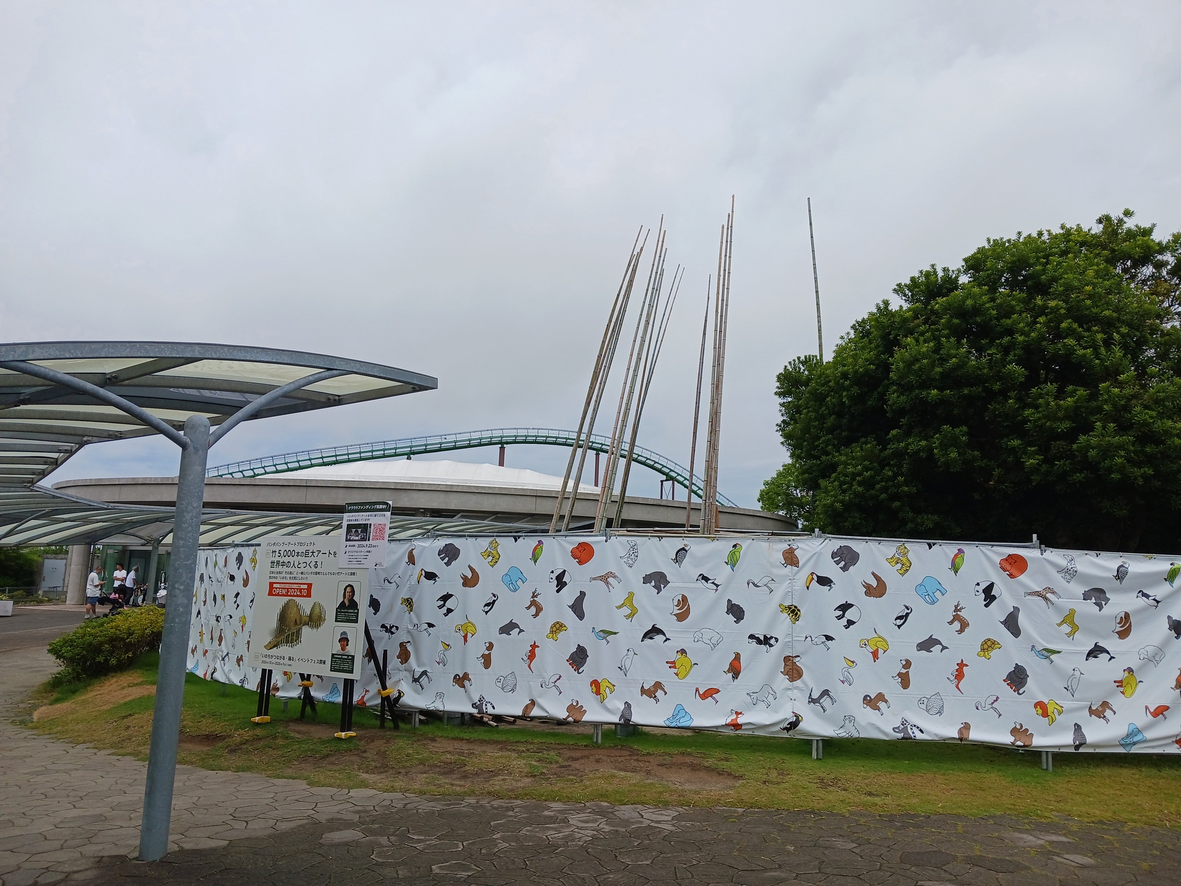 パンダラブの前に現れた、空に伸びる竹今しか見られない、次いつ見られるかわからないなかなか不思議な光景です囲いの中では絶賛アート製作中!!