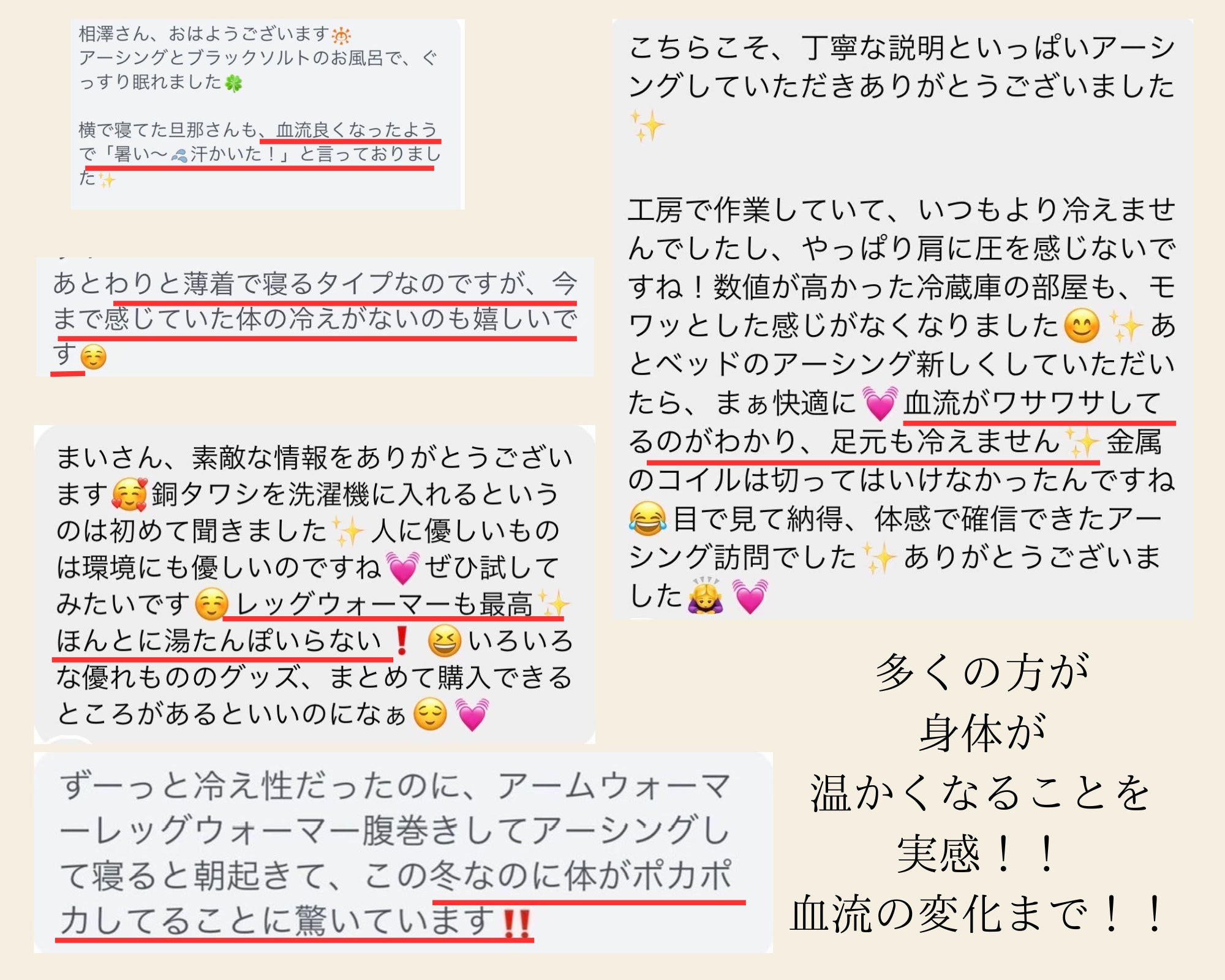 その結果、生理痛の薬や目ヤニの目薬がいらなくなったり、中には「朝一日が始まるのが楽しくて、自然に笑えるようになりました」と、人生そのものが変わったとおっしゃる方もいます。