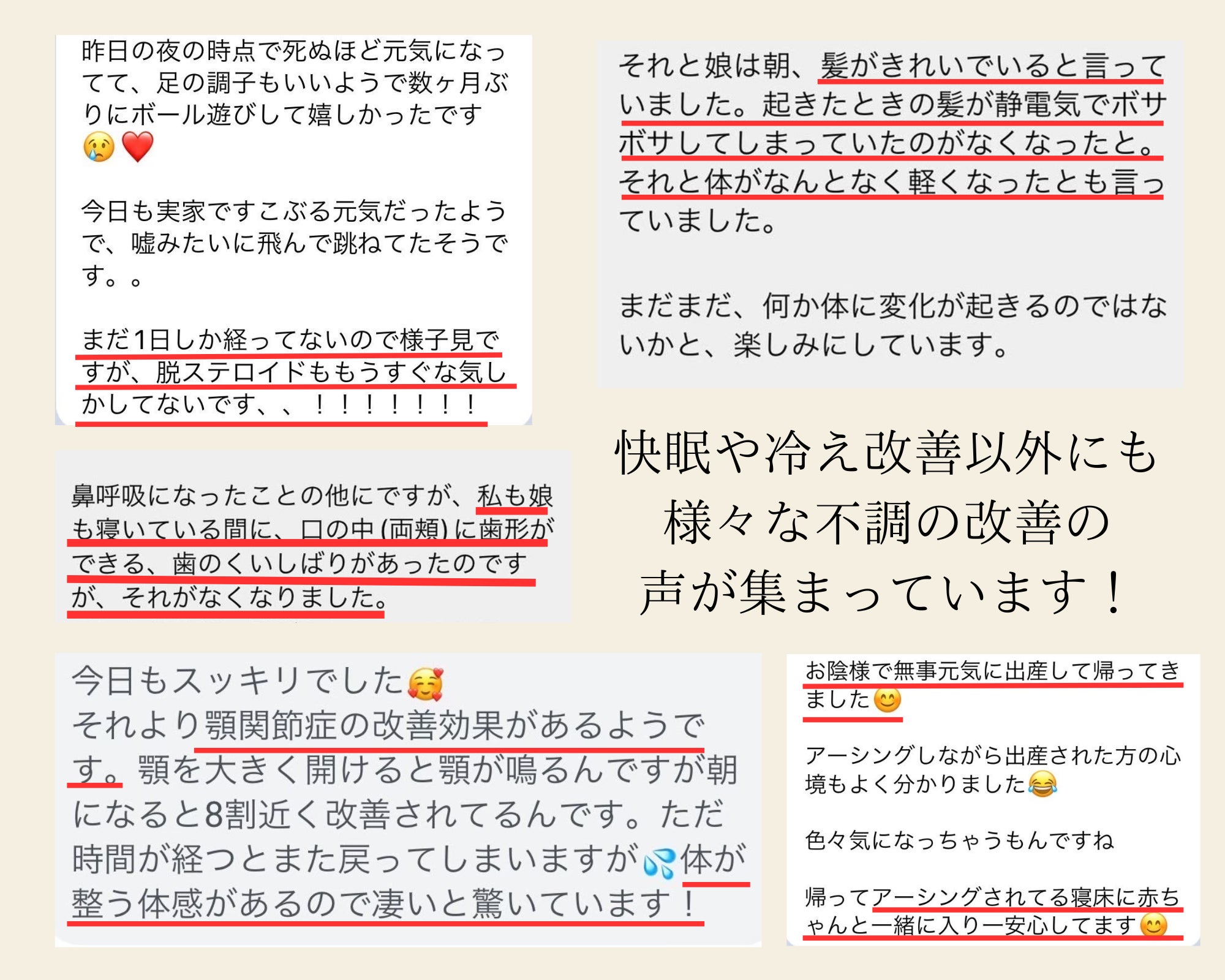 ・長年、夜中に2~3回は目が覚めてトイレに行っていたけれど、1回も目が覚めずに朝までずっと眠れました。