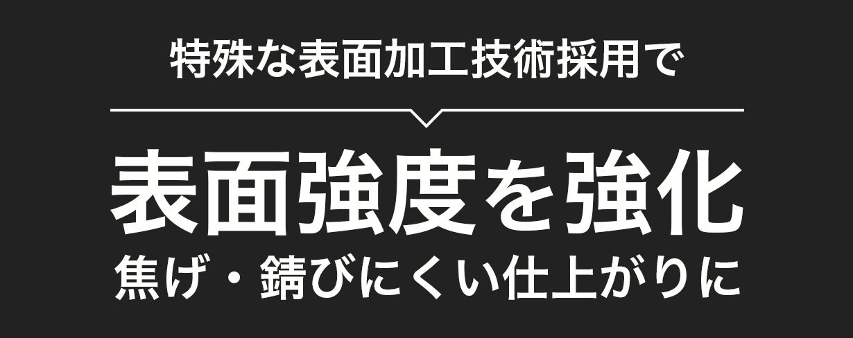 ①【表面強度強化!】サビ・焦げ・傷が付きにくい窒化処理を施工。アウトドアシーンもお任せ!