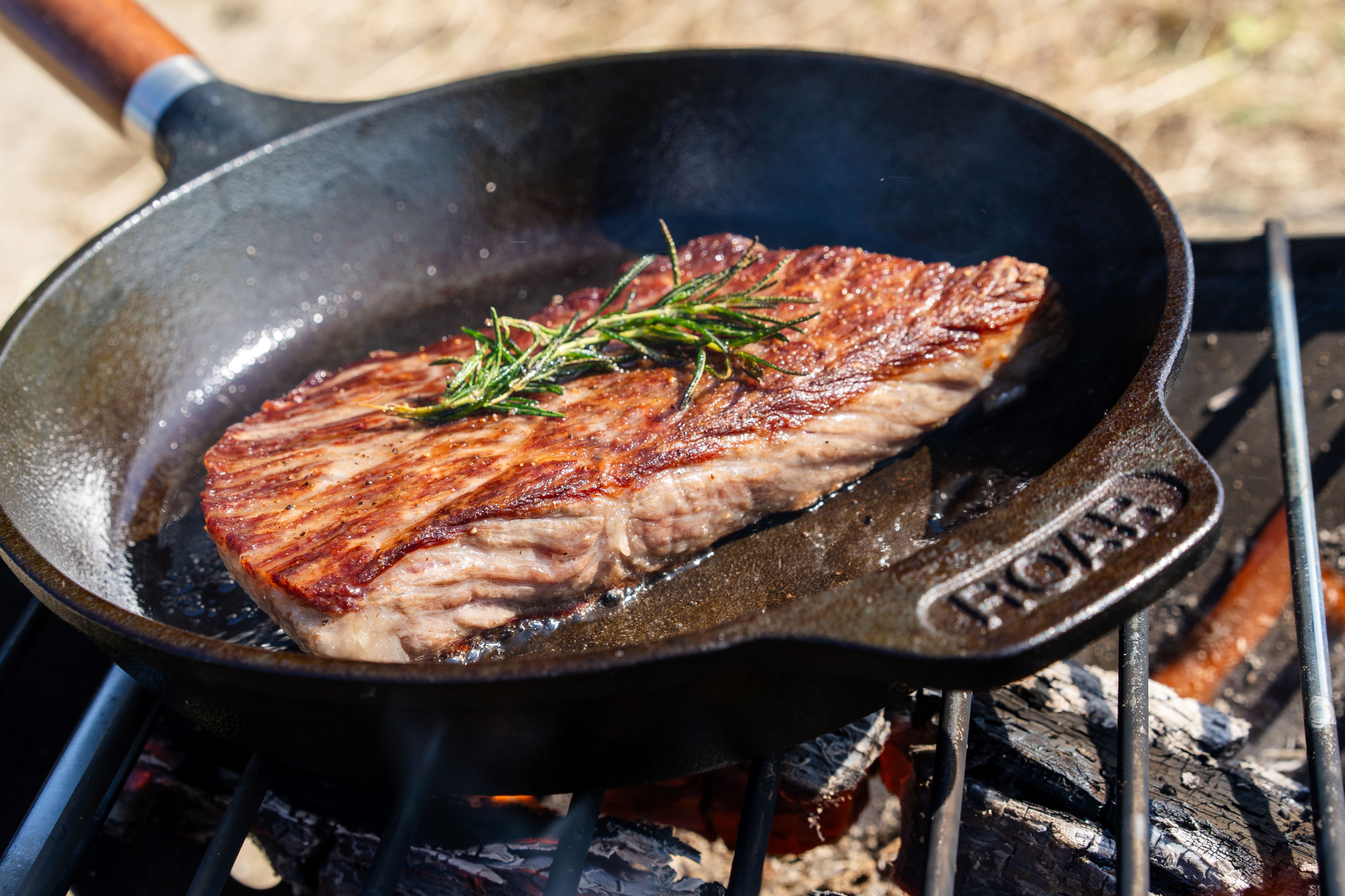 鋳鉄フライパンの優れた熱伝導性による高温調理で