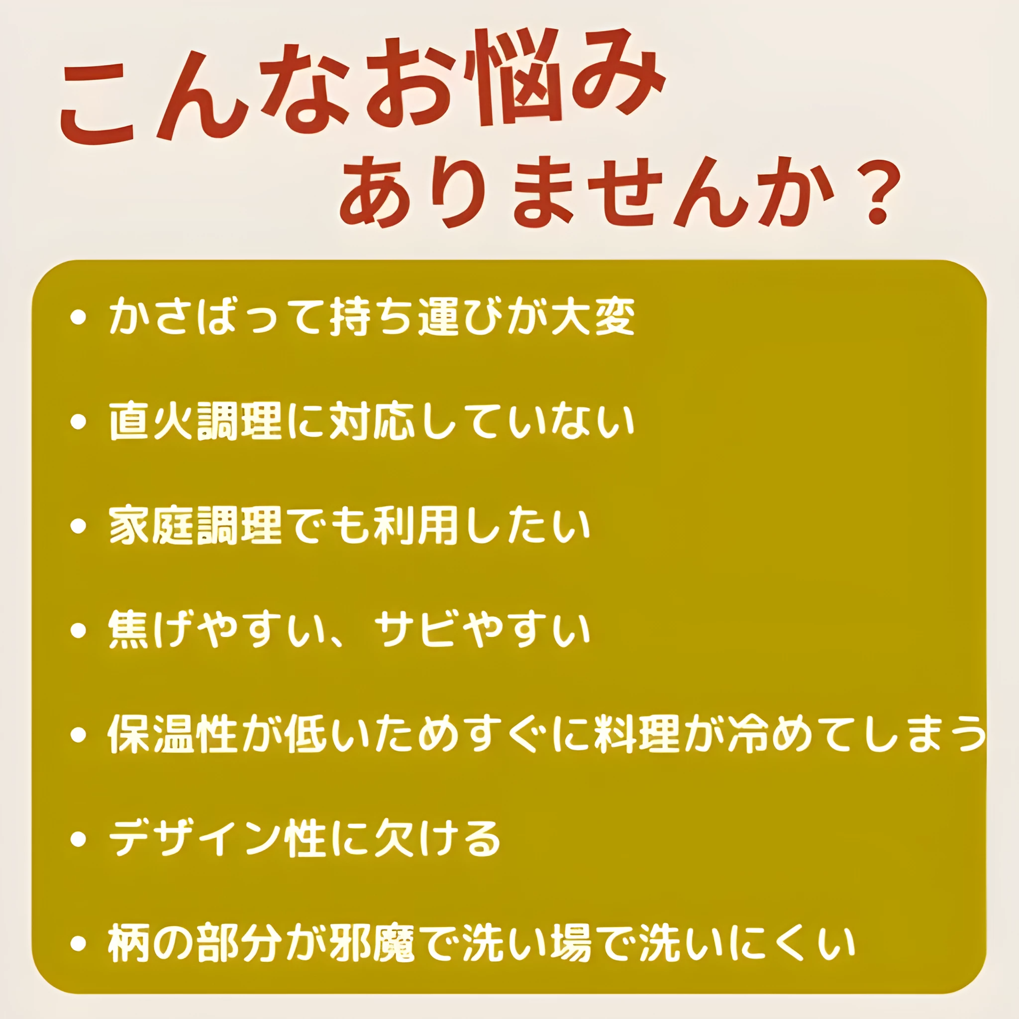 - ②【蓄熱&伝熱性抜群】4.5㎜のなべ底が均等に加熱し旨味を凝縮。誰でも美味しい料理が作れる!