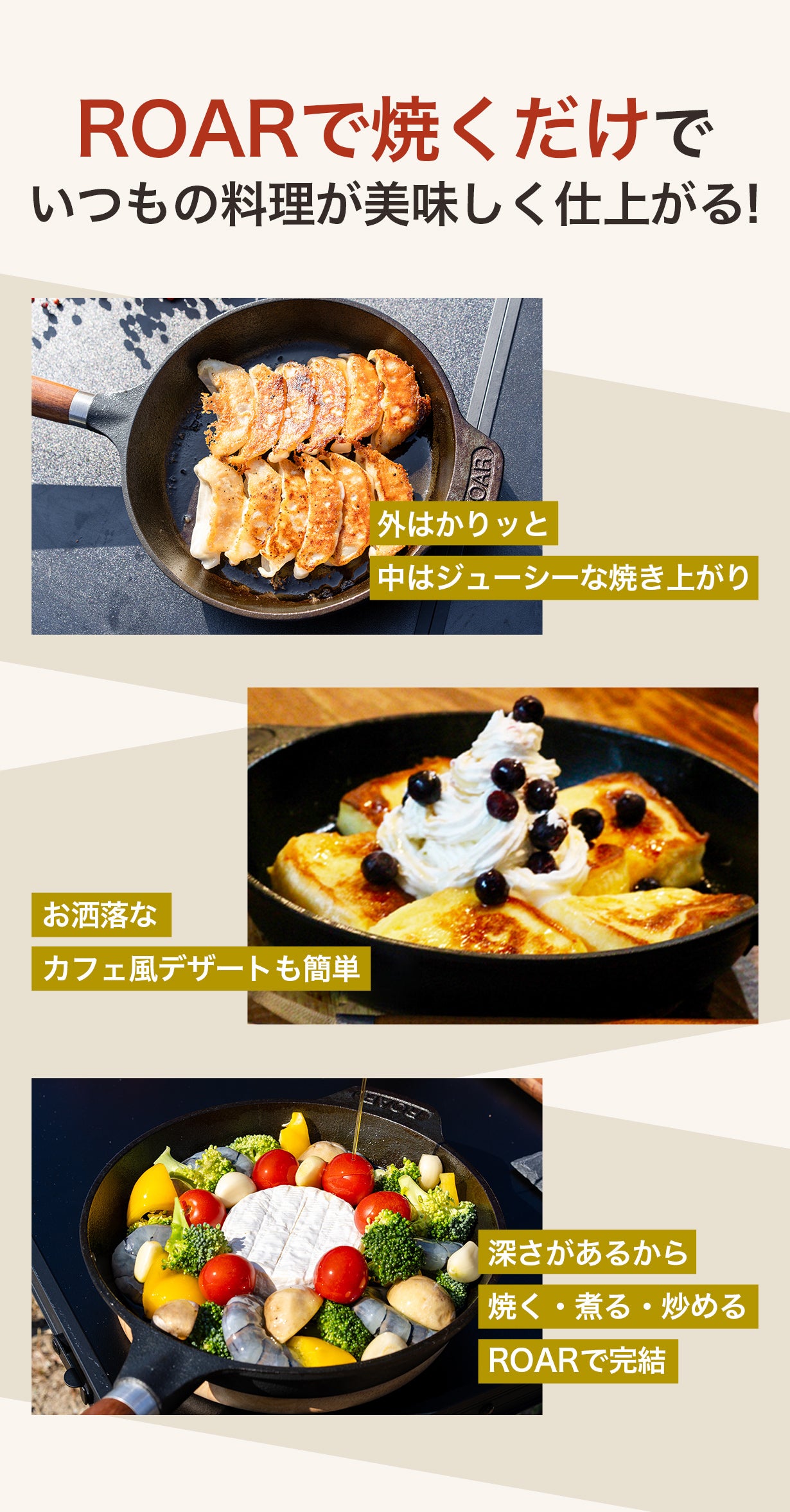 このROAR鋳鉄フライパンは、私の情熱とビジョンの結晶であり、この商品を通じて、料理愛好者やアウトドア愛好者の心に響く特別な瞬間を創り出すことができると確信しています。