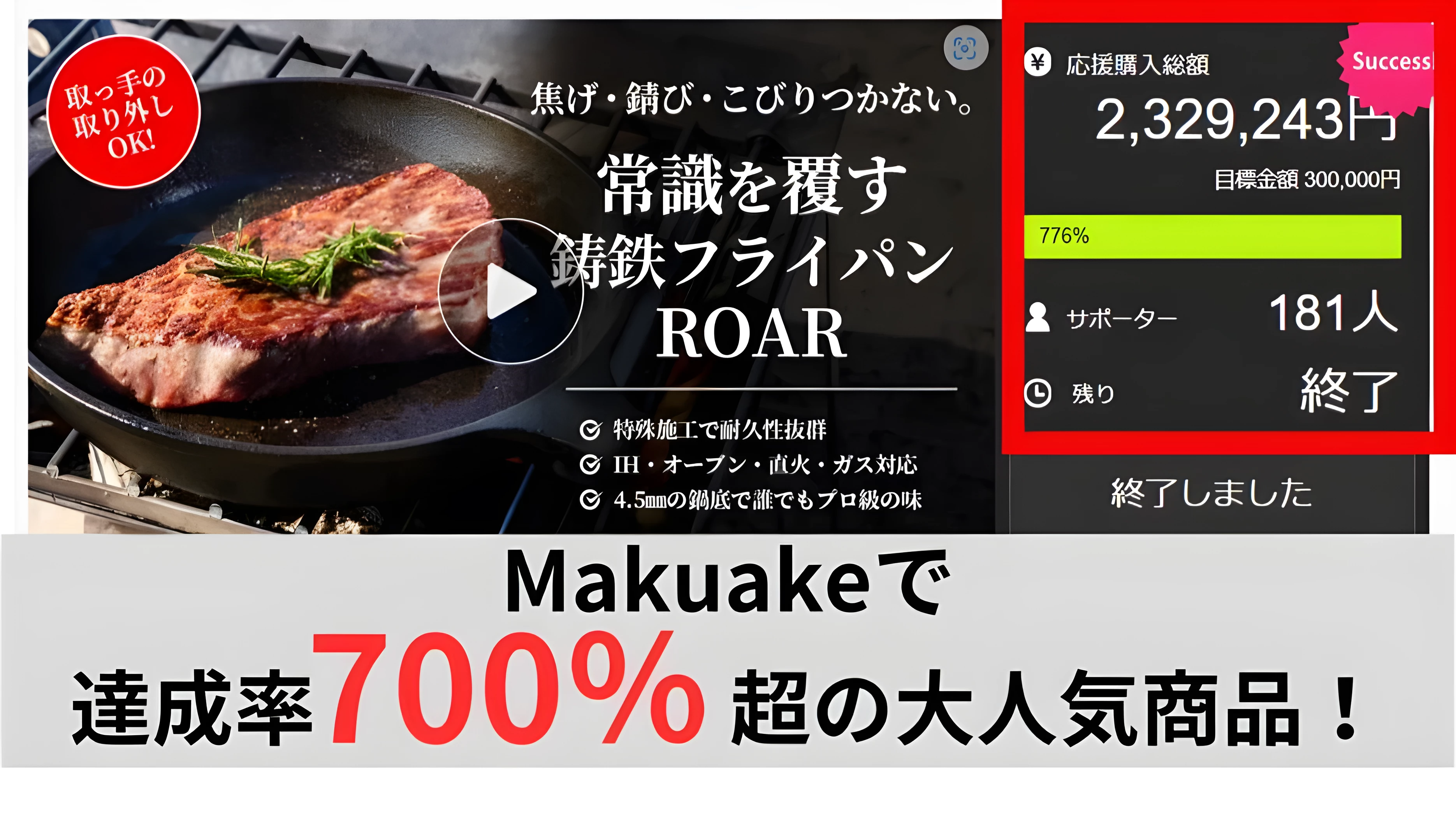 この度は数あるプロジェクトの中から、「ROAR鋳鉄フライパン」をご覧いただきありがとうございます。