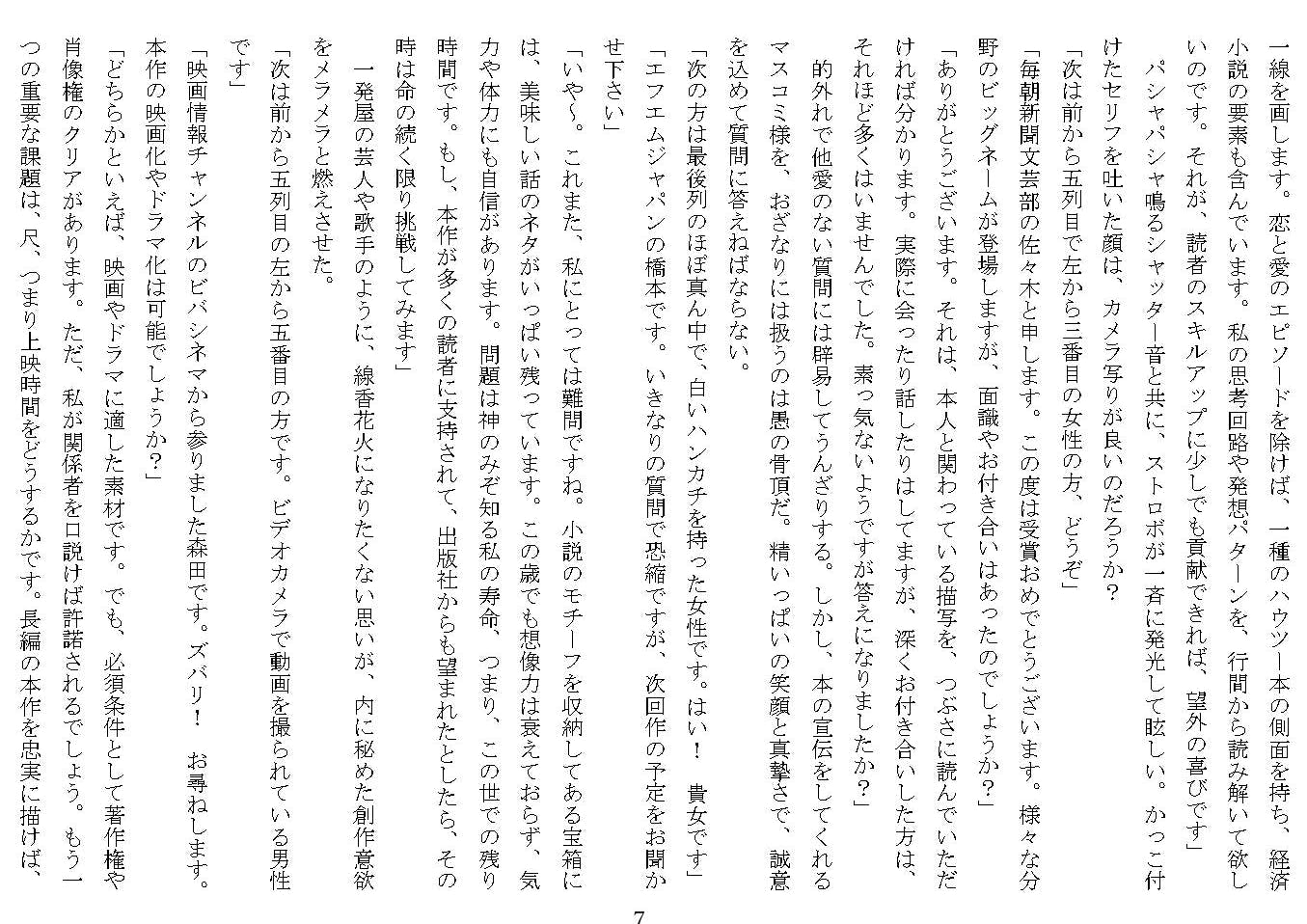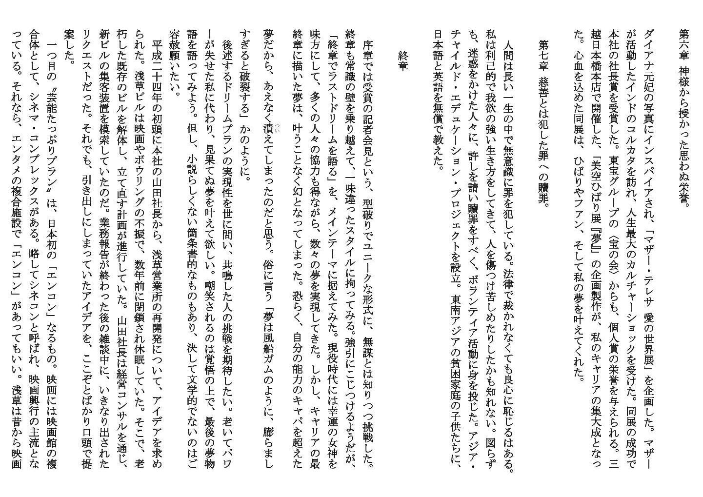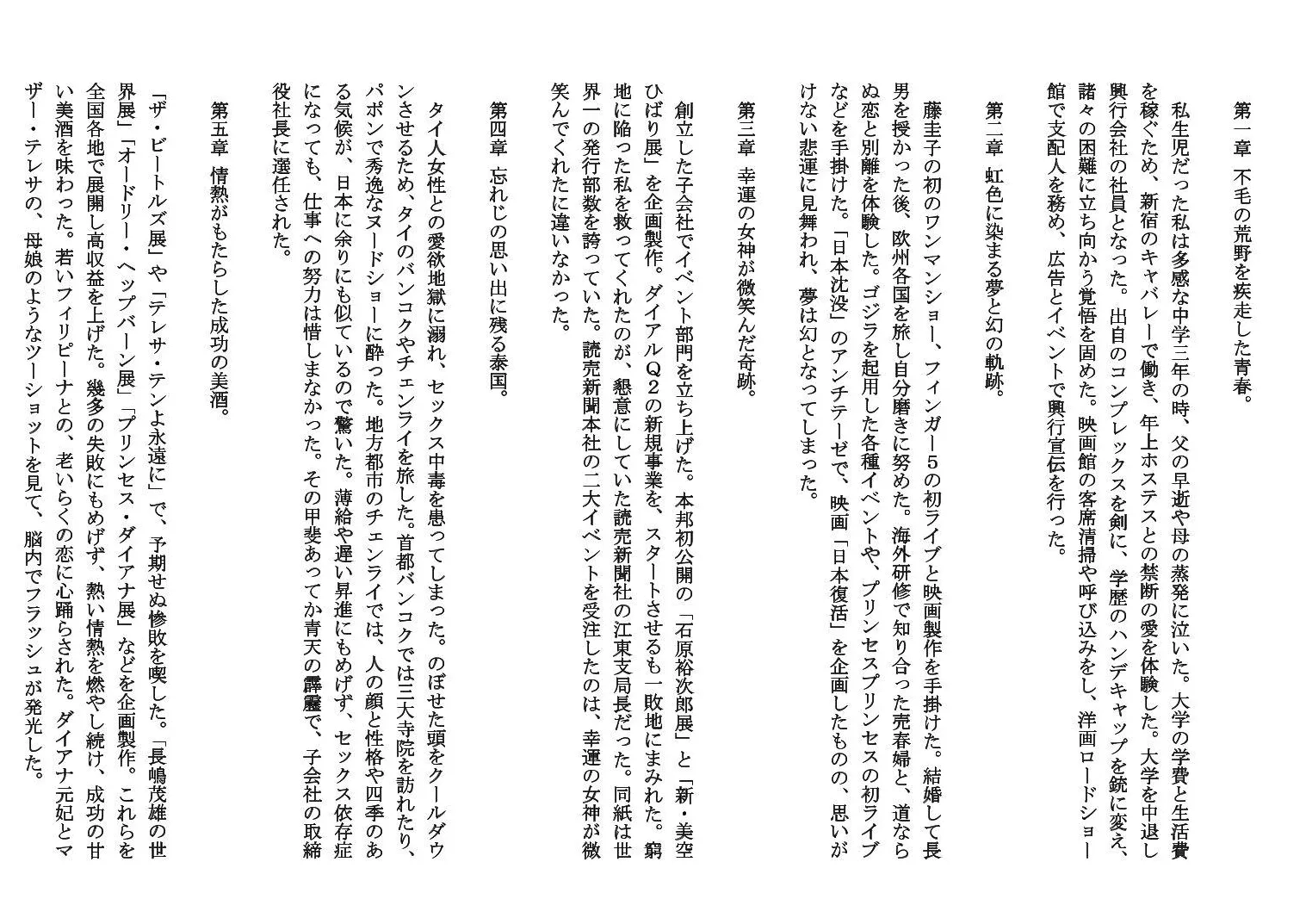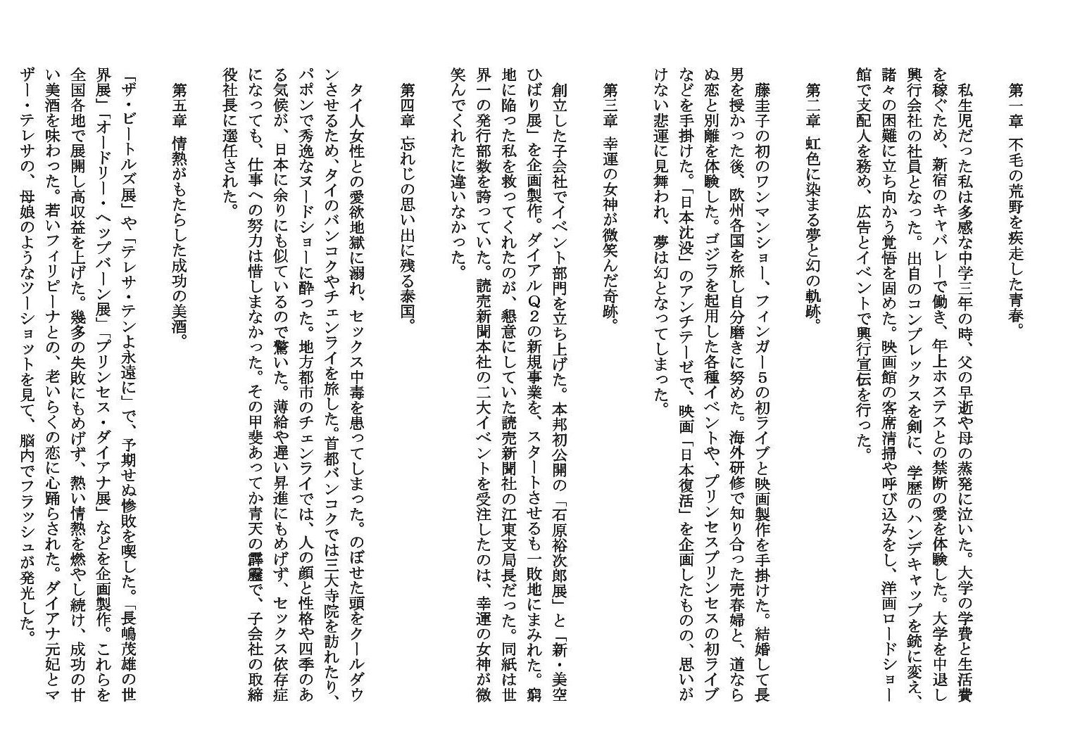 劇的な人生をあからさまに綴った小説をさらしめ、私の生き様を世に問うプロジェクトに、貴方も協力者として関わってみませんか? 81歳にして夢の実現に挑む最後の冒険に、貴方の厚いご支援を心からお待ちしております。ご支援いただけることで、作品が多くの人々の心に刺さればと思っています。支援者様が当てて下さる光りで、このプロジェクトを成功させて、その輝きを共有できれば幸いです。なお、どんな小説かを知っていただくため、序章のフルバージョンと、第一章から第七章、終章のダイジェストを、下記に添付しました。お暇な折にご高覧ください。なお、文字の画像が小さいので、デバイスの環境によっては、読みづらくなる可能性があります。その際はご一報ください。元原をメールでお送りします。