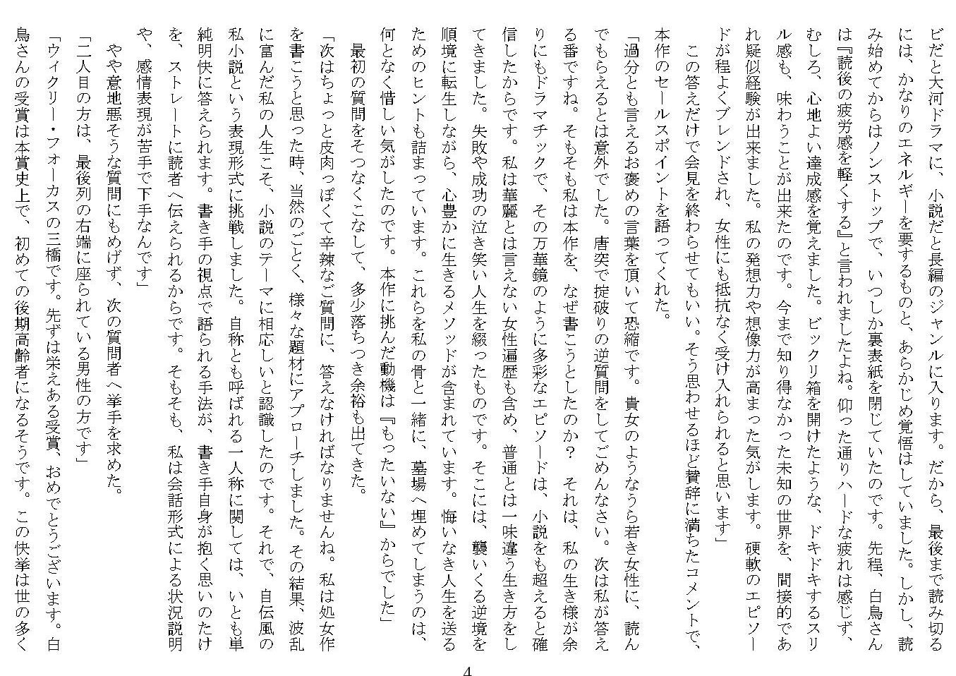 ➋書籍の表三に著者の謝辞やサインと日付を、肉筆で書き入れたものを提供します。メールで礼状を差し上げます。(書籍代は税込で1,000円〈文庫本・約450ページの長編 / 梱包、送料、手間賃が1,000円 / 450ページの文庫本は、1,500円以上のバリューあり)
