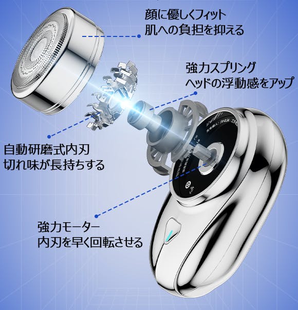 シェービングヘッドと保護カバーはマグネット式になっており、磁力で簡単に着脱できるため、普段のメンテナンスに便利です!