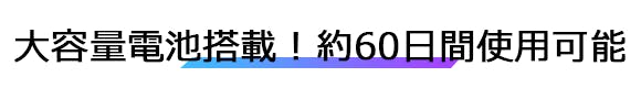 サイズは極めてコンパクトですが、300mAhの大容量バッテリーを搭載しており、1回のフル充電で約60日間使用可能です。※事前に充電しておけば、出張や旅行でも電池切れの心配はありません。