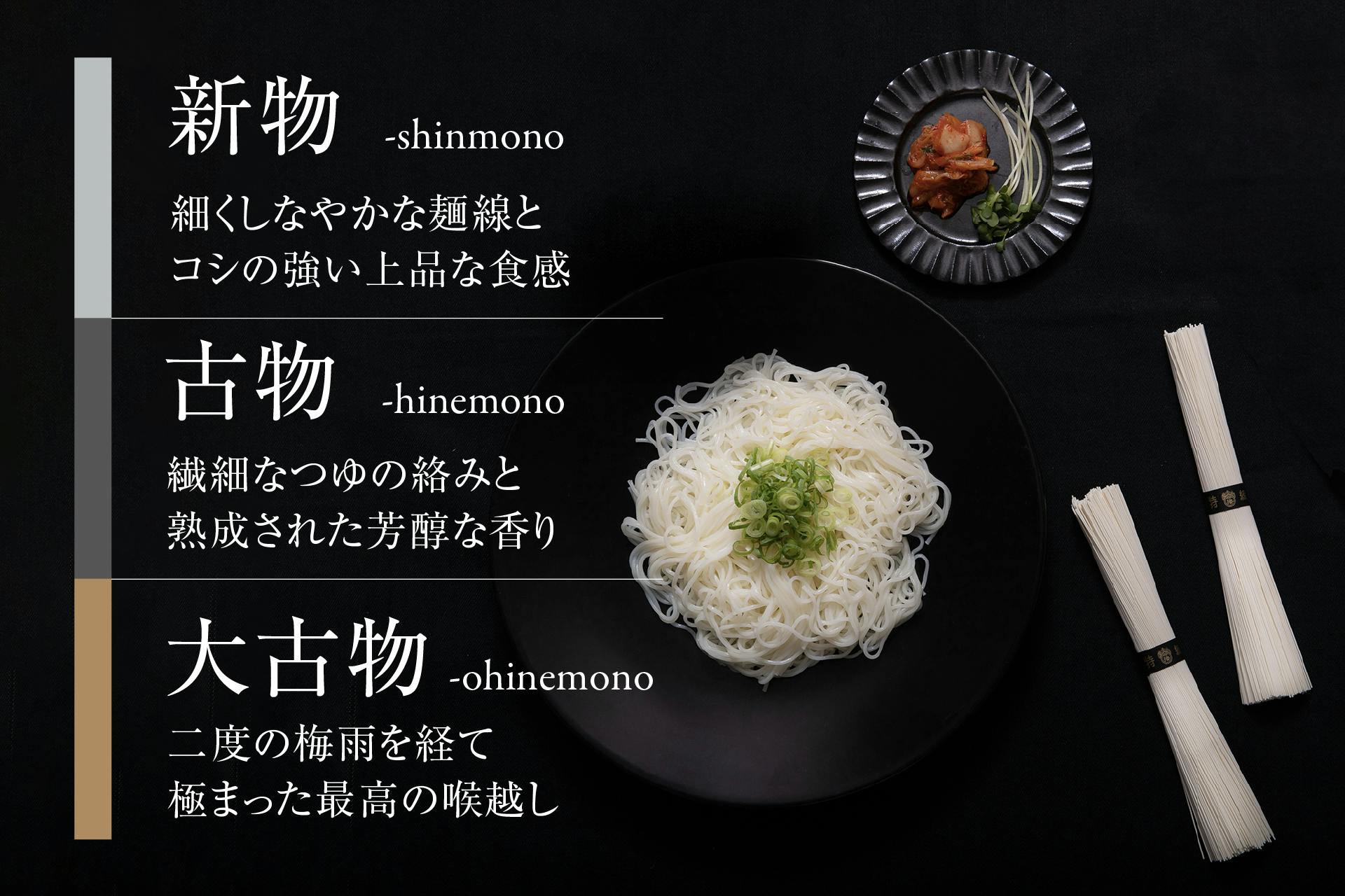 じっくりと熟成させたそうめんはさらにコシが強く、舌ざわりも良くなると言われています。