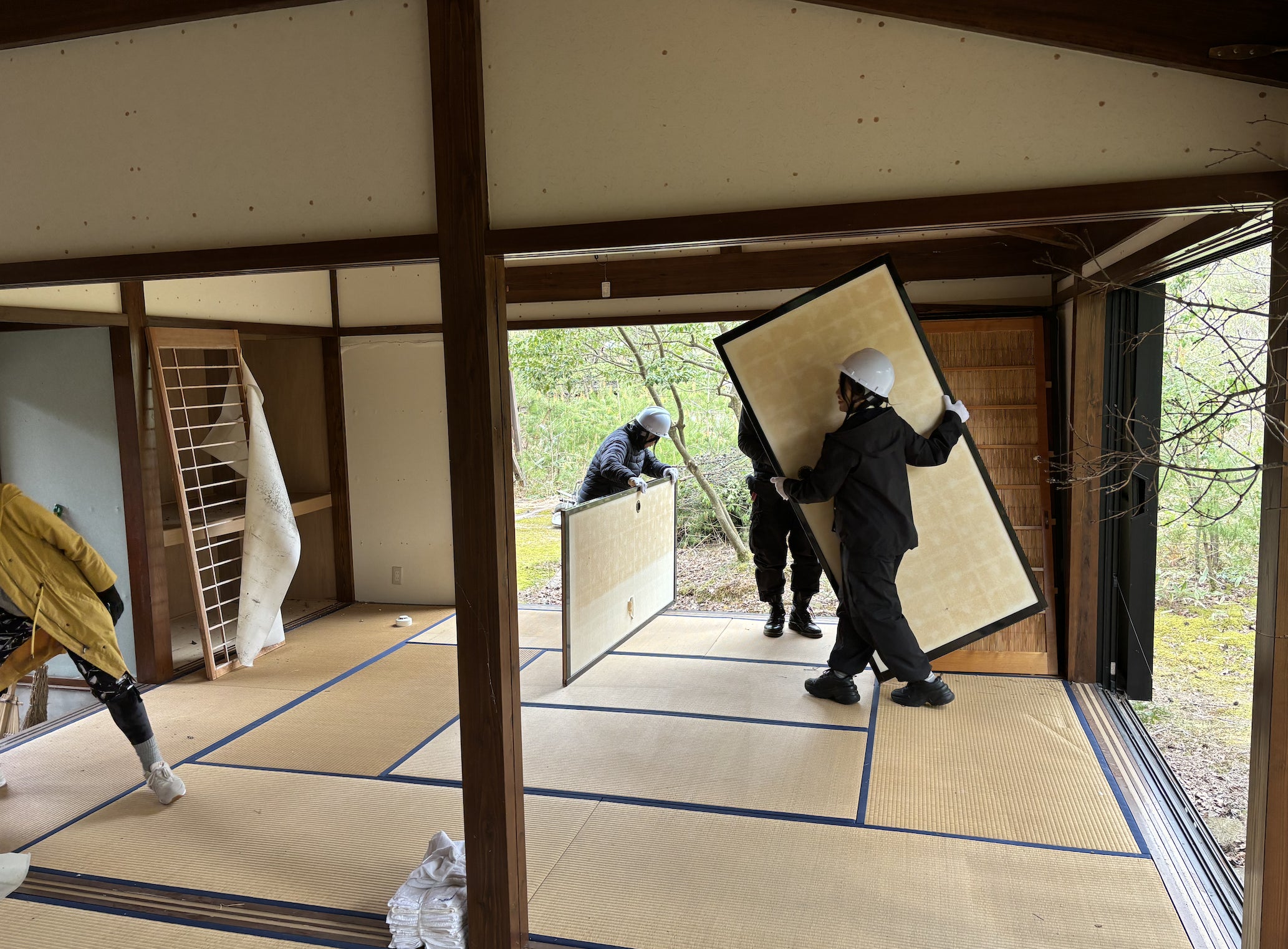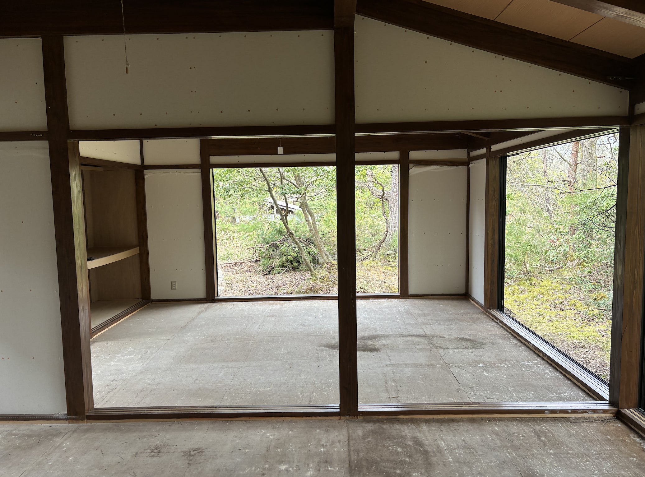 雨戸、窓、障子、襖、畳など損壊し使用することができなくなった瓦礫を撤去し躯体だけを残しました。
