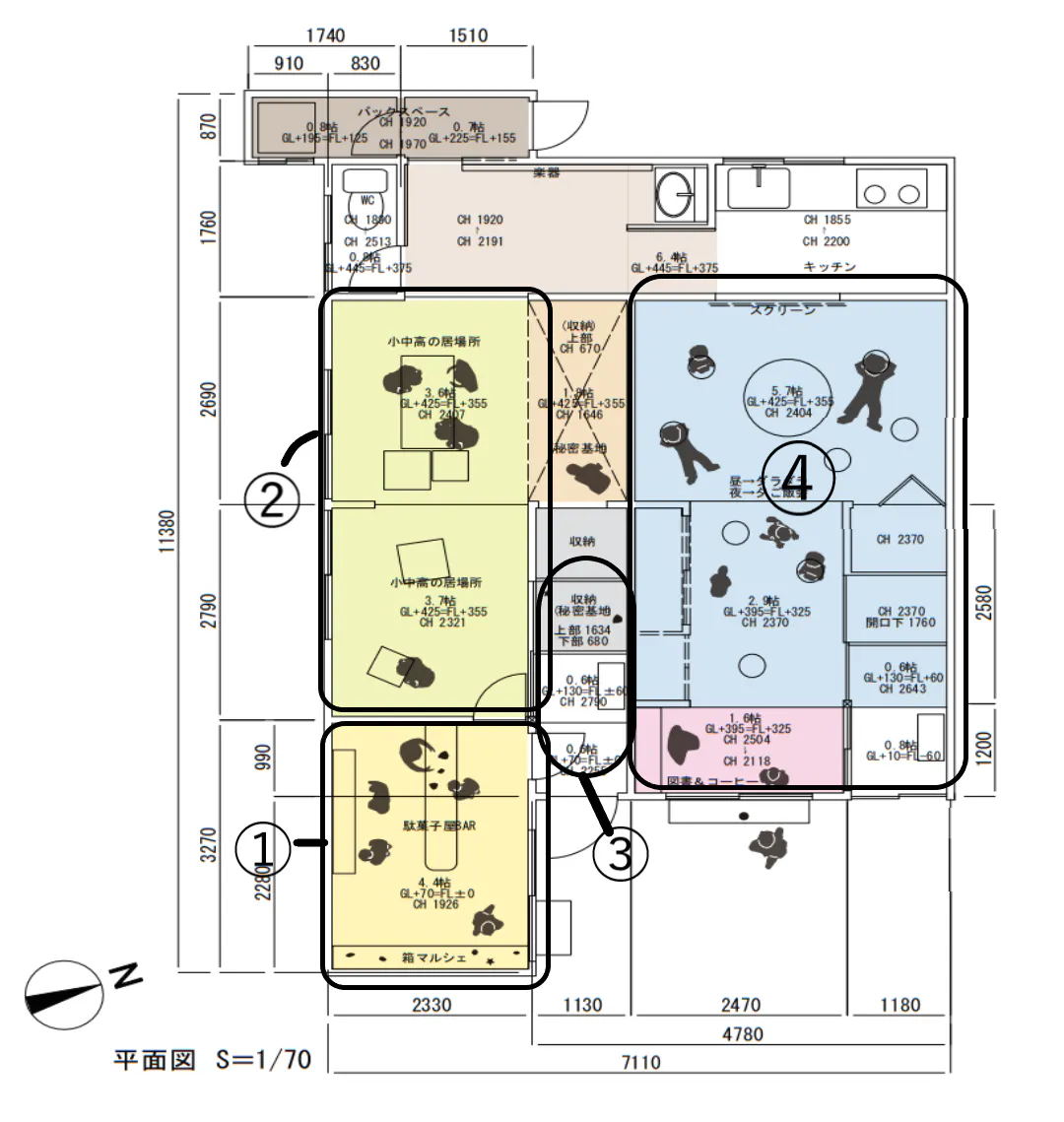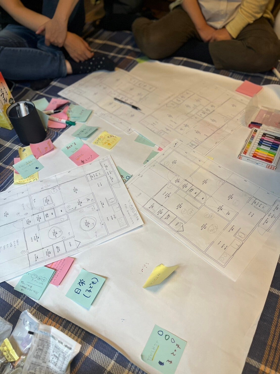 今回の計画では主に、長屋二軒分を使い、片方は「だがしやさん」を中心とした主に小中学生を対象とした居場所スペース、もう一軒は大人や小さい子どもがゆっくりくつろげるようなスペースとして作っていくことにしました。