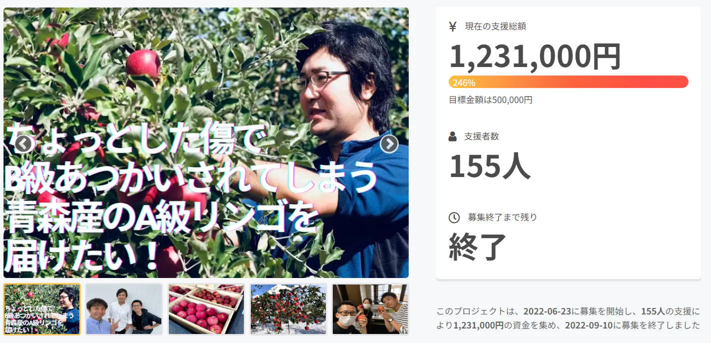 そこで私達は2022年から複数にわたり、CAMPFIREにて『ちょっとした傷でB級あつかいされてしまう青森産のA級りんごを届けたい』を実施しました。