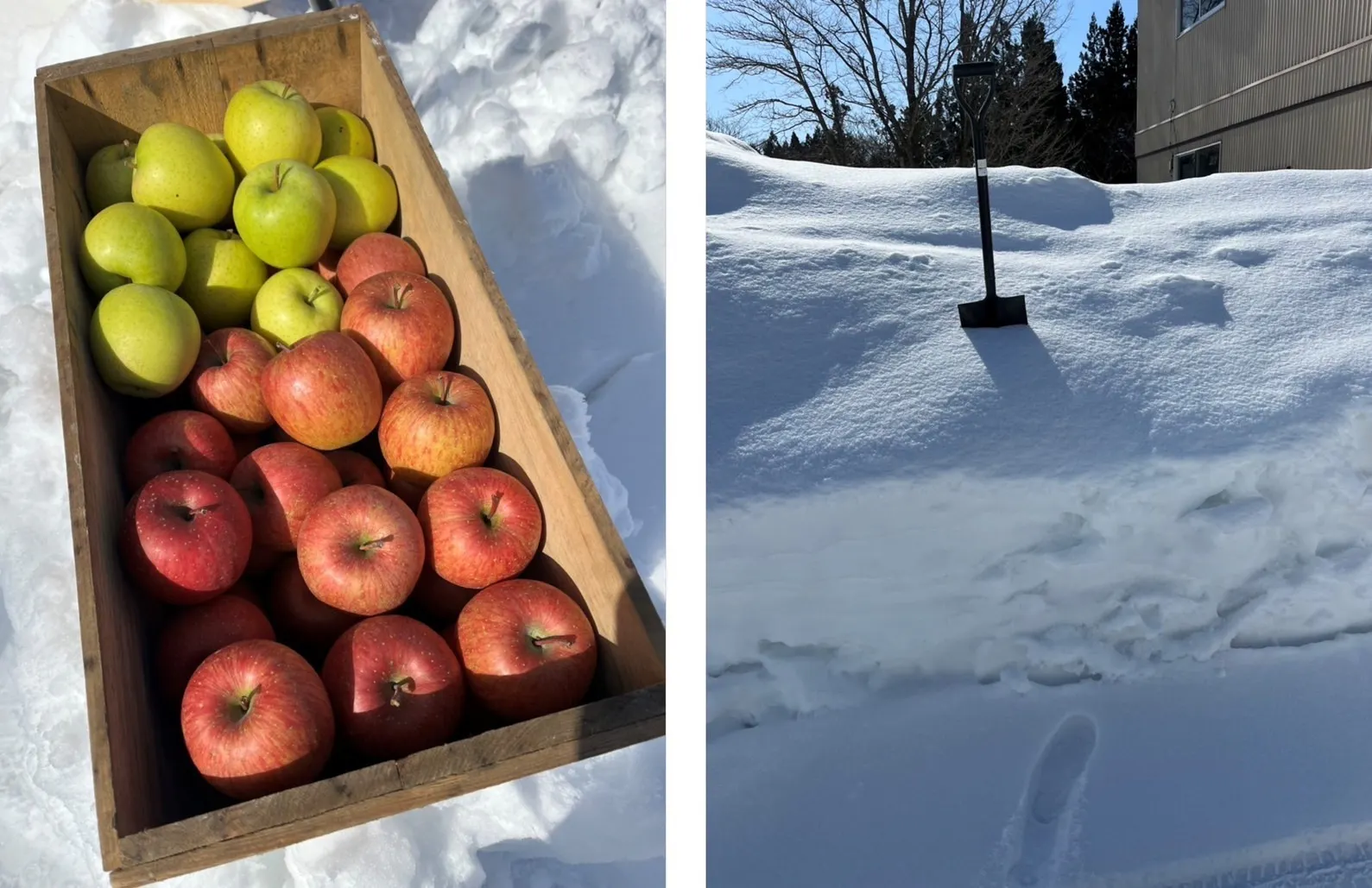 そこで、収穫してから3月までの間、寒い青森の雪の中で保存する『雪かぶりりんご』を作りお届けします!