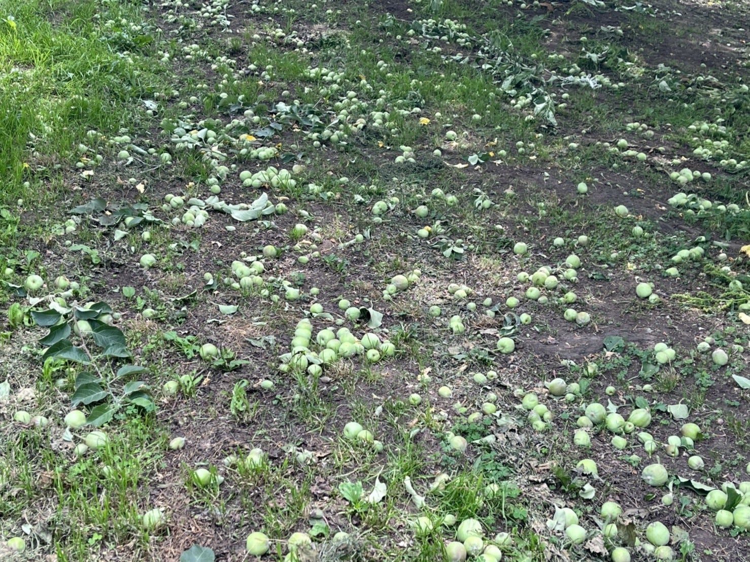 今年のりんごの生育は、平年より早め、昨年と同程度で進んでいます。代表的な品種「ふじ」の横径はおよそ40mm、ピンポン玉くらいのサイズまで成長しました。