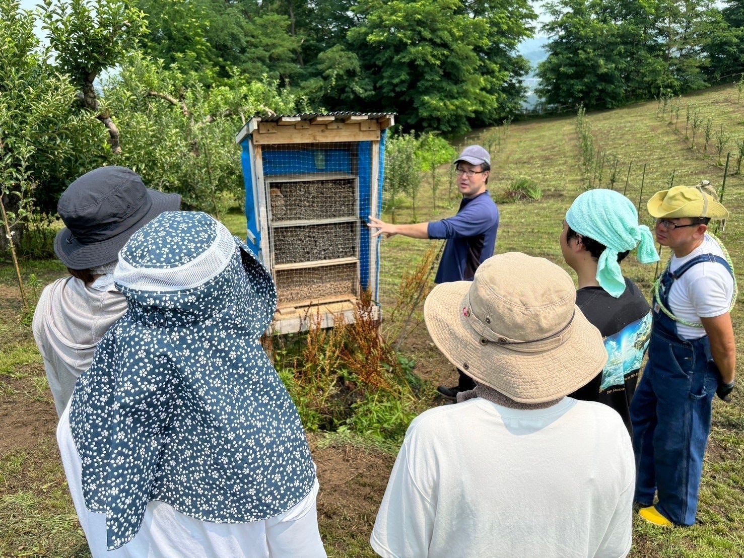 今週は農園に特別なお客様をお迎えしたご報告です。お客様は名古屋のカフェ「カルコラーレ」さん御一行です。カルコラーレさんは当園で収穫したりんごでアップルパイを提供して頂いており、昨年のクラウドファンディングでも、コラボ商品としてリターンにご用意させて頂きました。