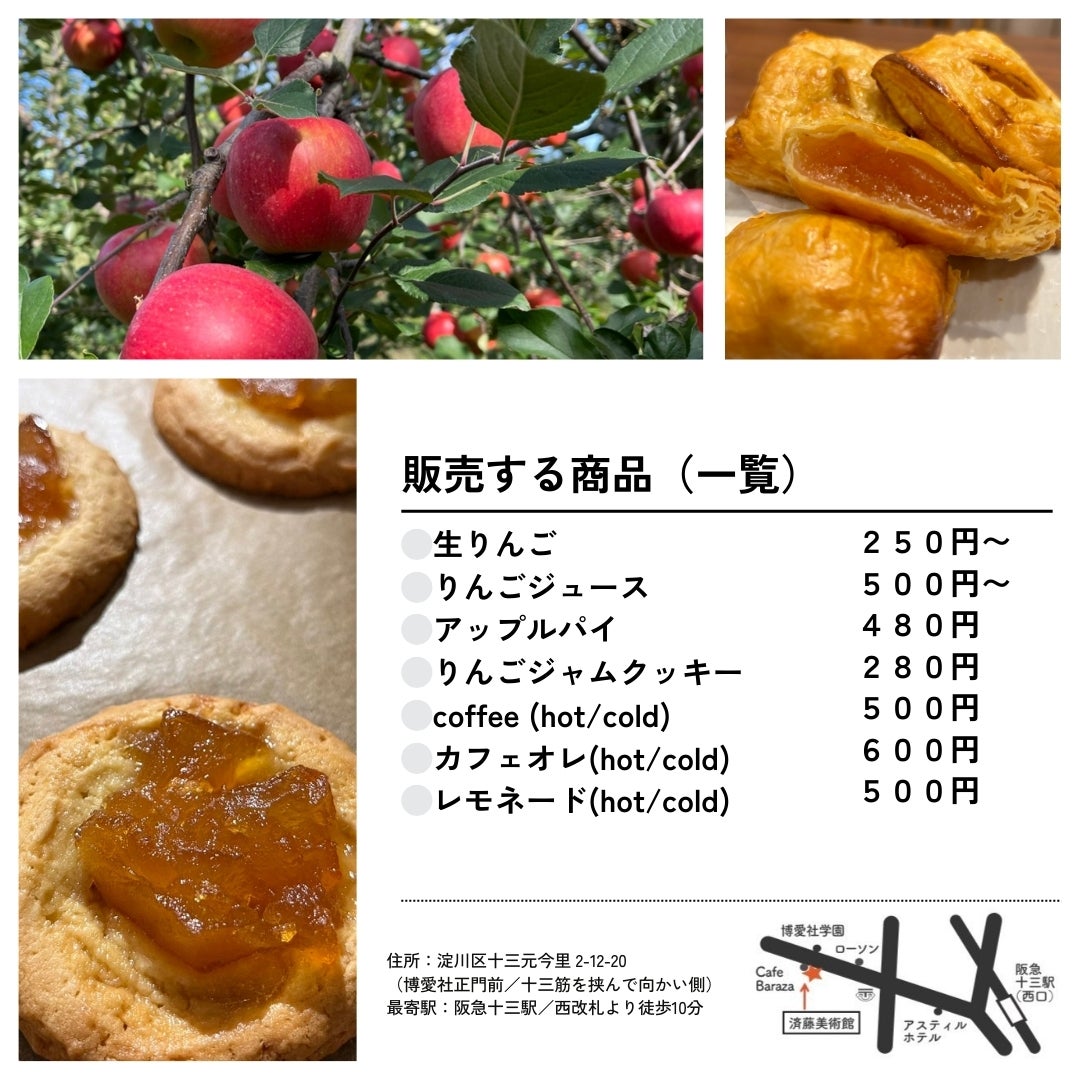 また、同会場には、当園のりんごを使ってアップルパイを作ってくださっているカフェ『カルコラーレ』さんにも出店して頂きます。アップルパイのみならず、コーヒーやレモネードも提供してくださいます。