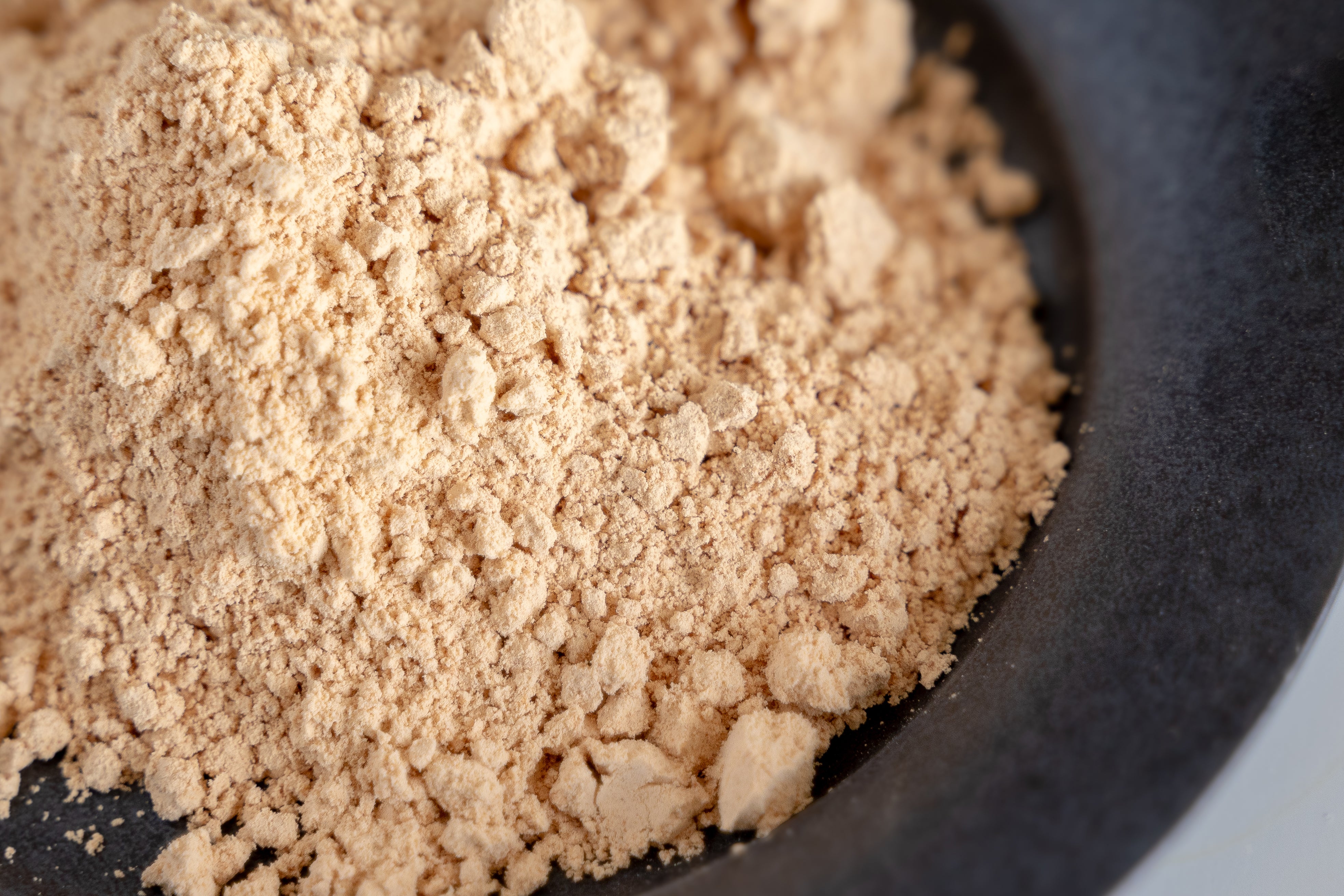 私たちは、大豆を素材から加工する技術があり、美味しいきな粉を開発しています。バウムクーヘンの商品も、このきな粉を使ってさらなる進化に向けて開発中です。