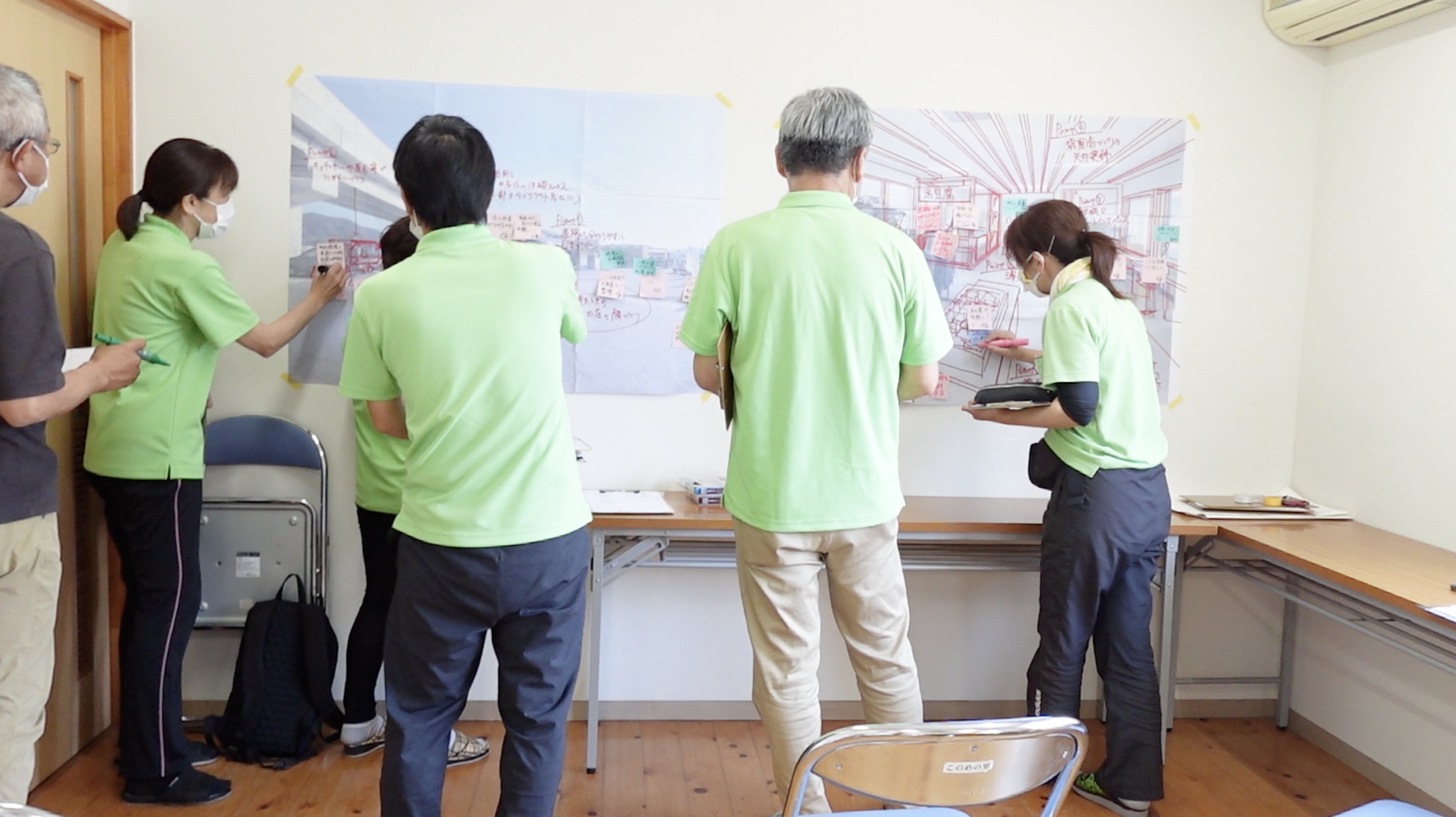 職員のみんなで「どんな新しい場にしよう?」と妄想しながらワークショップ。現のぎくも、できることから始めています。