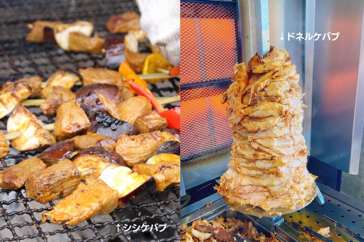 日本で有名なケバブは、シシケバブとドネルケバブ。シシケバブは串(シシ)にさして焼くケバブ、ドネルケバブは肉の塊を回転(ドネル)させて焼くケバブを指しています。ドネルケバブはイベントなど、キッチンカーでよく見かけるのではないでしょうか。