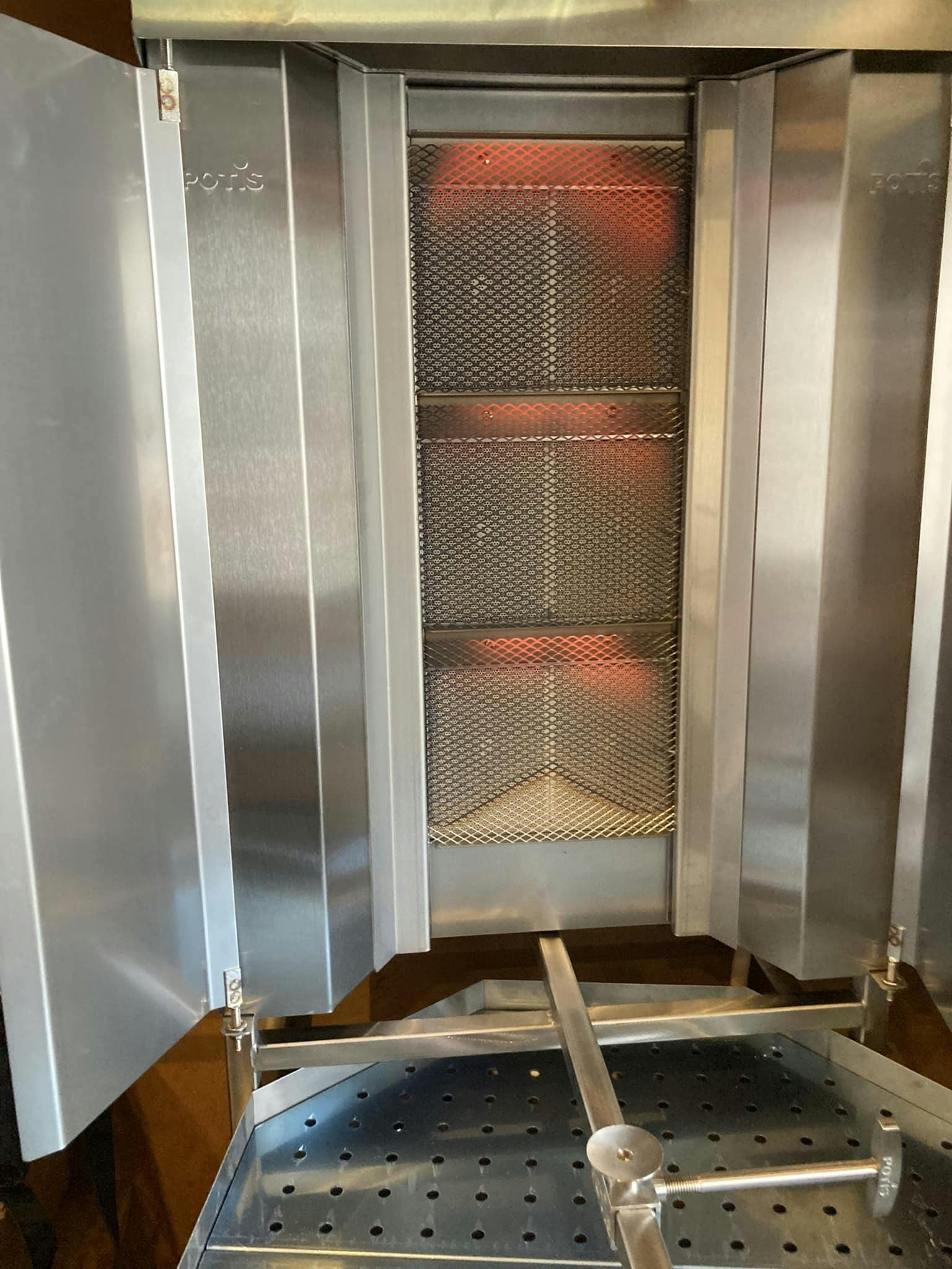 ですね。下の写真はケバブマシーン、ケバブを焼くグリルです。これをキッチンカーにのせて自分が移動すれば、より多くの人に食べてもらうことができる!