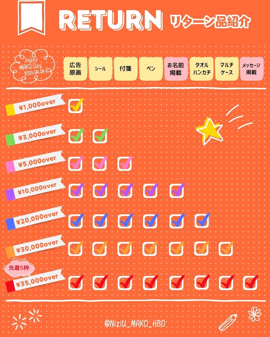 ・支援時に入力できる「応援メッセージ」は、NiziUメンバー宛ではなく、本プロジェクト企画者宛になっておりますのでご注意ください。