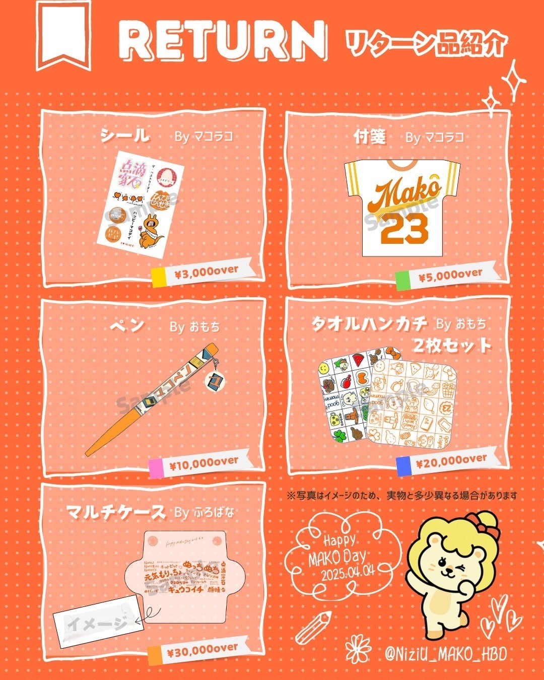 ・リターン品のイメージについては、確定次第、更新予定です。ただこちらのページは反映に時間がかかる可能性があるため、リアルタイムで確認をしたい方はこちらX(旧Twitter)よりご確認をお願いいたします。