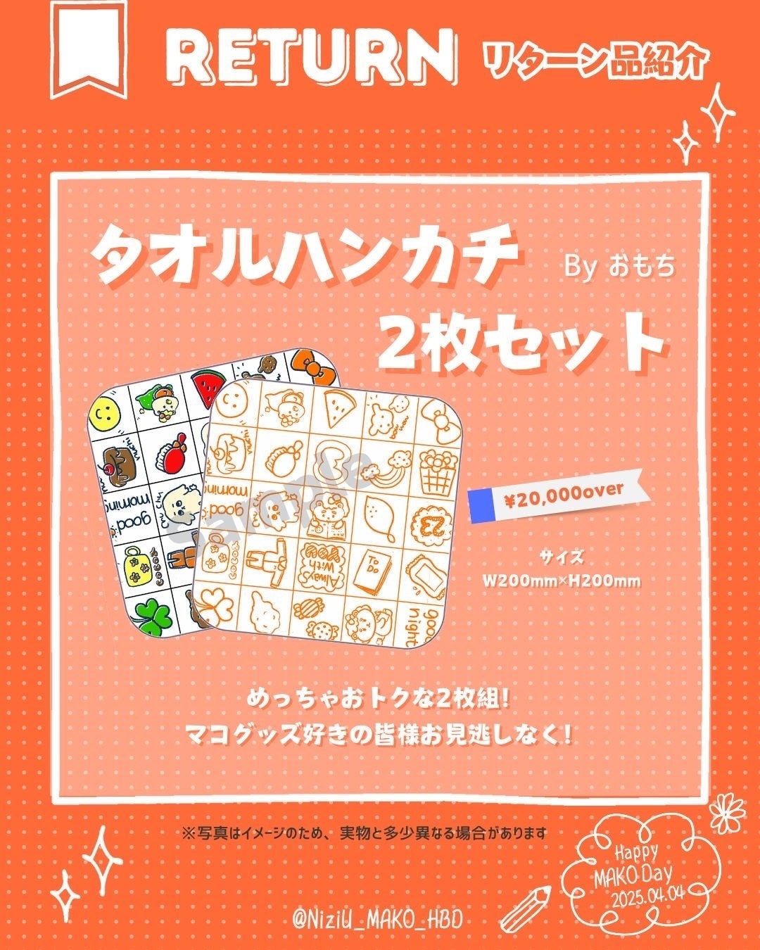 2023年のお誕生日企画のリターン品のタオルぶりのタオルハンカチです!