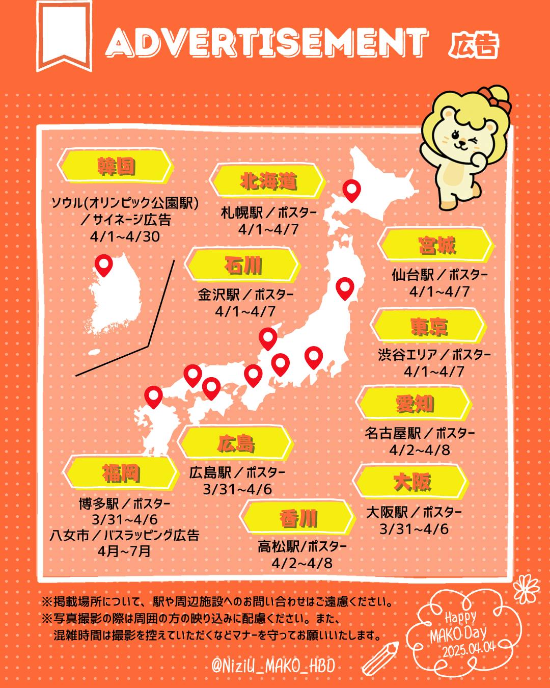 これでMAKOセンイル広告の掲載としては初地区となる金沢・高松を含めて史上最大の韓国・日本10地域での広告掲載となります。