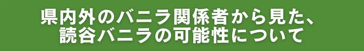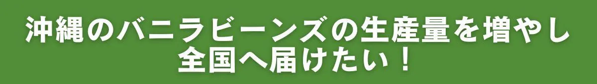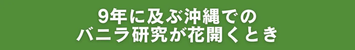 沖縄は熱帯に近くバニラの栽培適地のため、バニラ栽培にはとても可能性を感じる。海外と比較すると、生産量は追いついていない問題はあるものの、すでに沖縄県内でも国産の高品質なバニラを栽培、加工ができていることからもバニラ栽培に期待は大きいです。